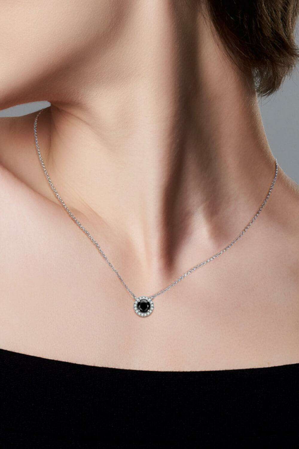 Indulge in Elegance: Elevate your style with our Sophisticated Two-Tone Moissanite Round Pendant Necklace, featuring a stunning 1 carat moissanite stone that sparkles and shines, capturing the light in every setting.