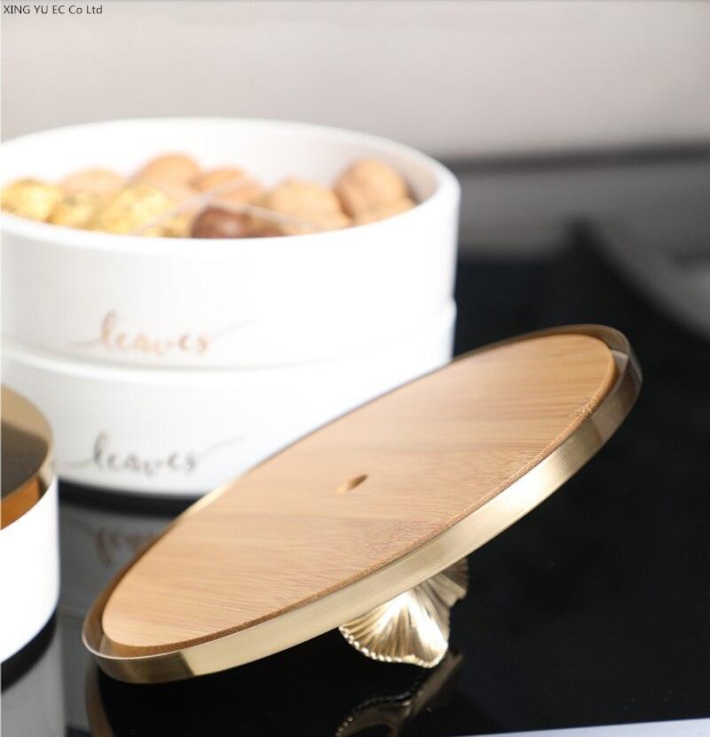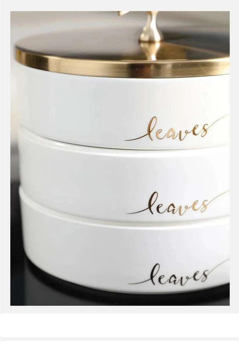 Elegant Ginkgo Leaf Ceramic Serving Tray with Stylish Metal Accents