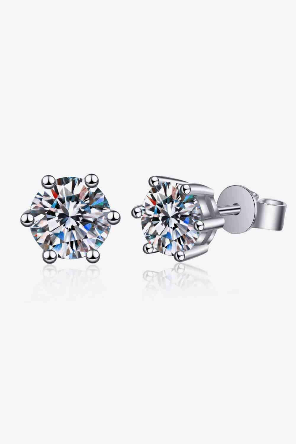 Elegant Moissanite Stud Earrings Set in Rhodium-Plated Sterling Silver