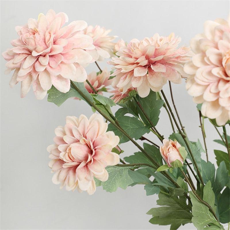 - 6 Lifelike Dahlia Flower Heads: Each stem is adorned with six vibrant pink dahlia heads that add a touch of elegance to any arrangement.