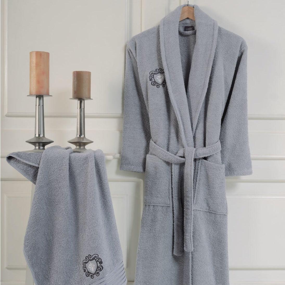 Elegant Turkish Cotton Embroidered Men's Bathrobe Set with Hand Towel - Premium Spa Collection