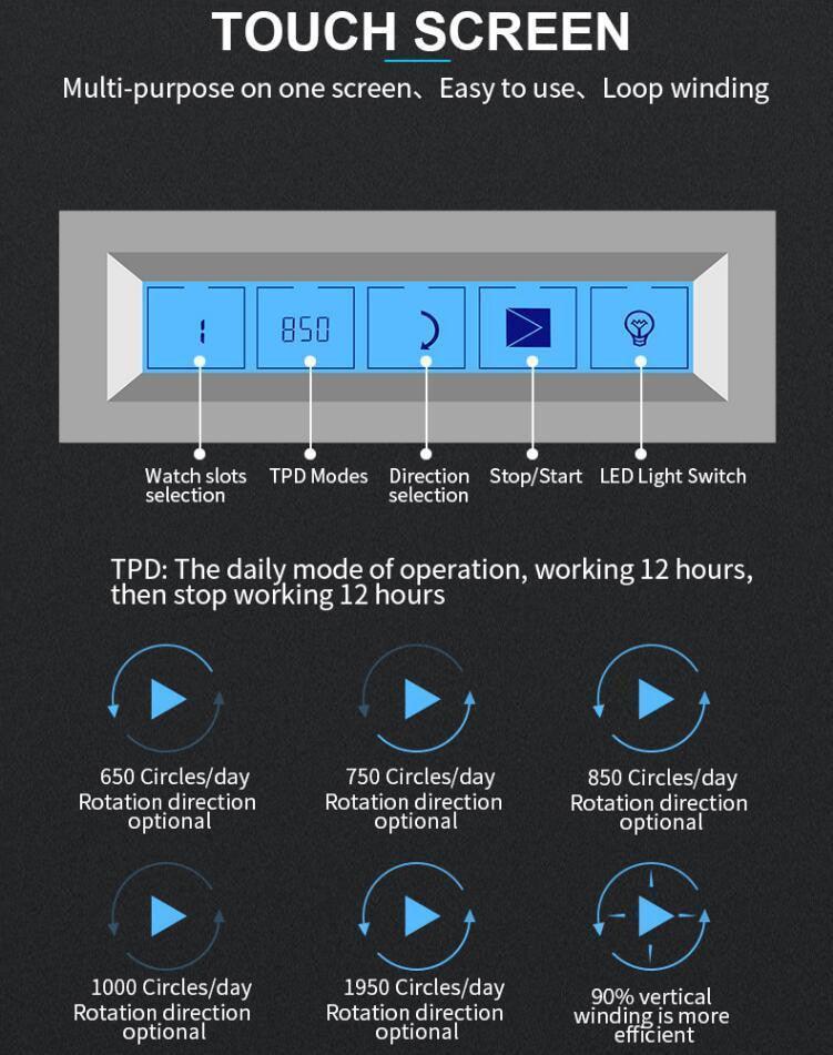 - Advanced LCD Touch Screen: Easily customize rotation settings with the user-friendly interface designed for optimal watch care.