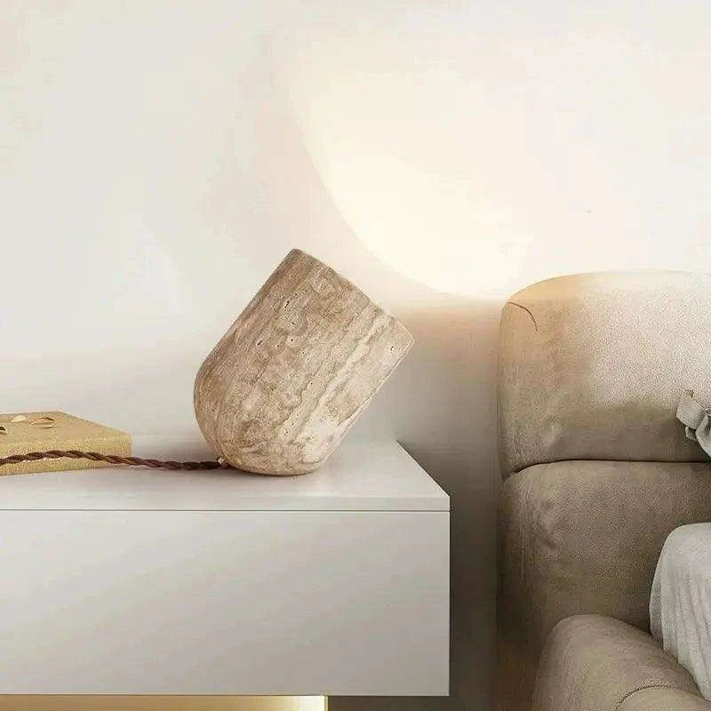 Elegant Yellow Travertine Stone LED Table Lamp for Contemporary Home Aesthetics