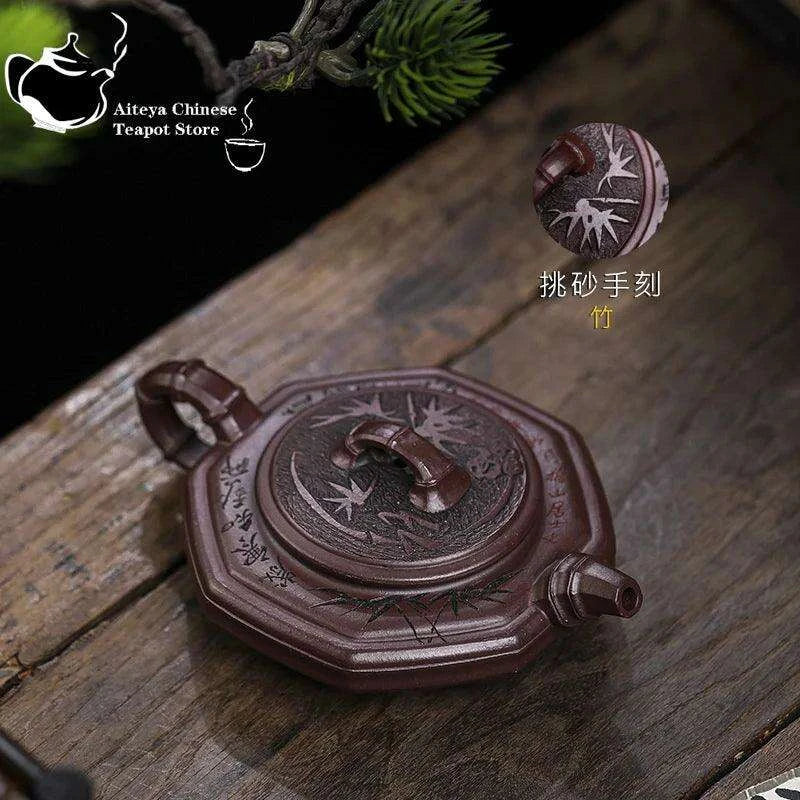 Authentic Handmade Purple Clay Bamboo-Themed Kung Fu Tea Set - 120ml Teapot