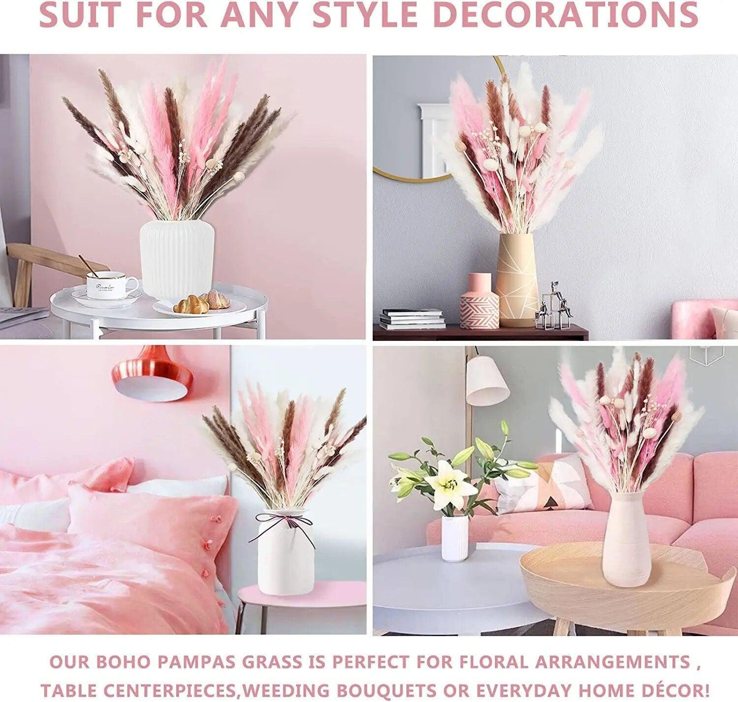 - Unique Variety: Boasting 11 varieties, including 104 assorted pampas plants, this bouquet delivers a rich texture and visual allure that captivates.
