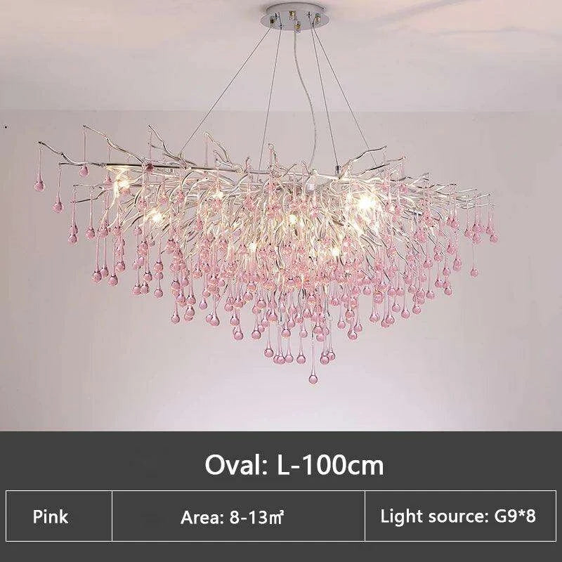 The stunning chandelier showcases vibrant pink lustre crystals that captivate the imagination. Its delightful aesthetic makes it an ideal addition for: