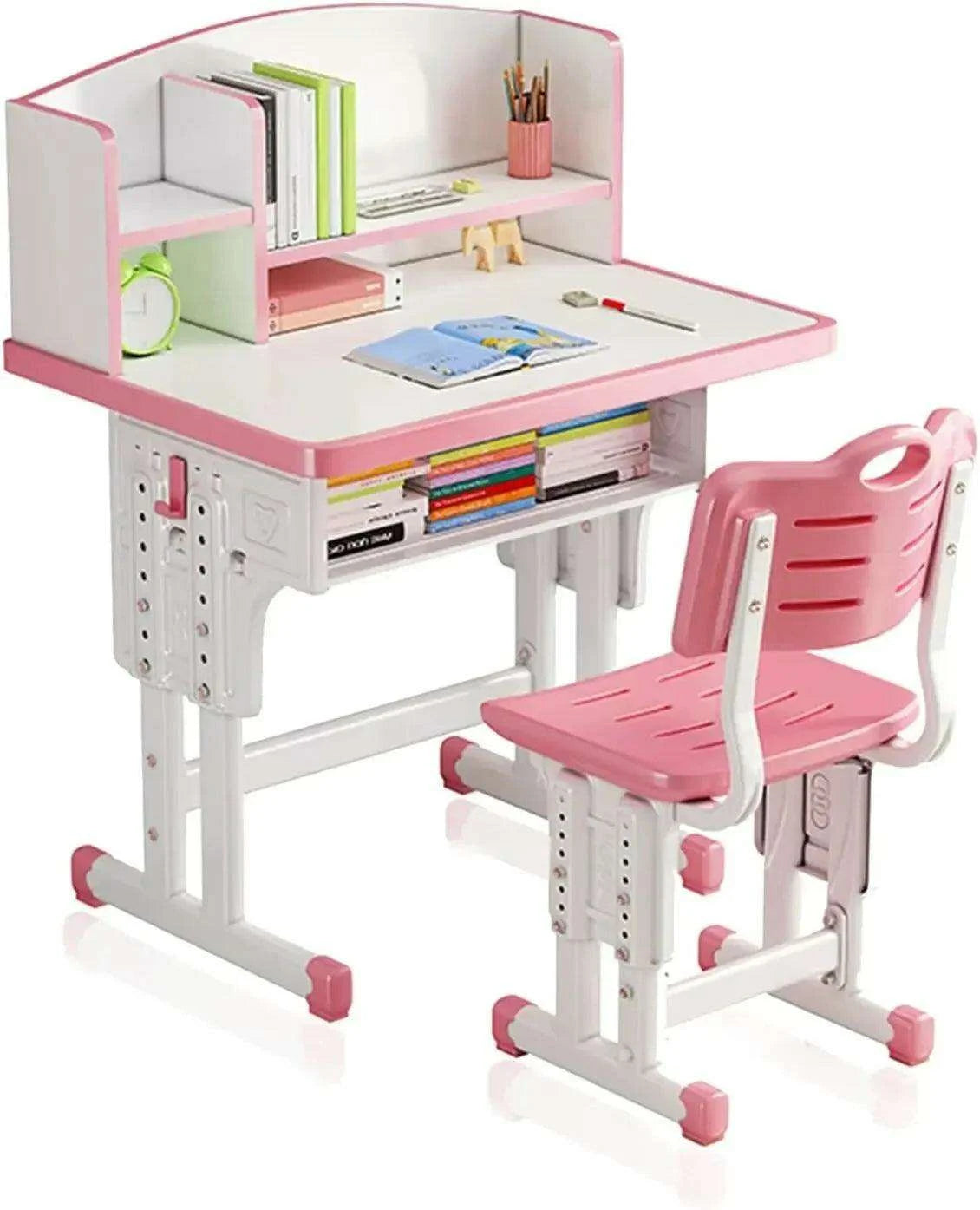 ErgoKids Adjustable Study Desk & Chair Set with Integrated Bookshelf - Ergonomic Design for Growing Kids