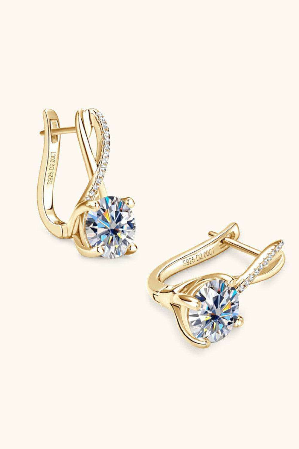 Luxurious 4 Carat Moissanite and Zircon Sterling Silver Earrings with Gold and Platinum Finish