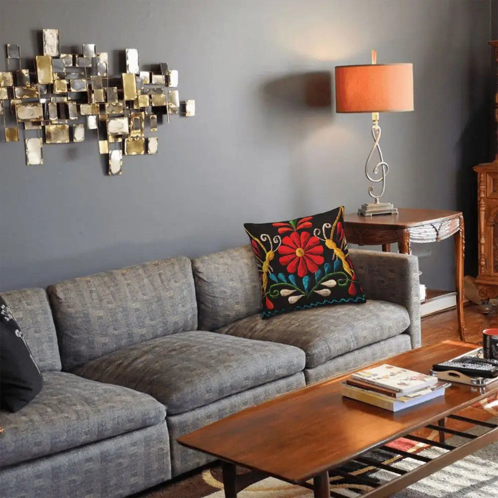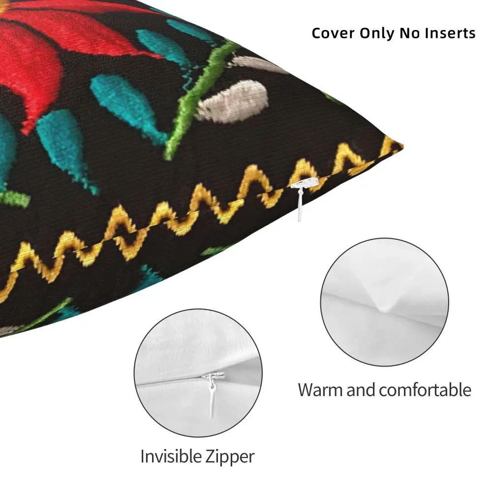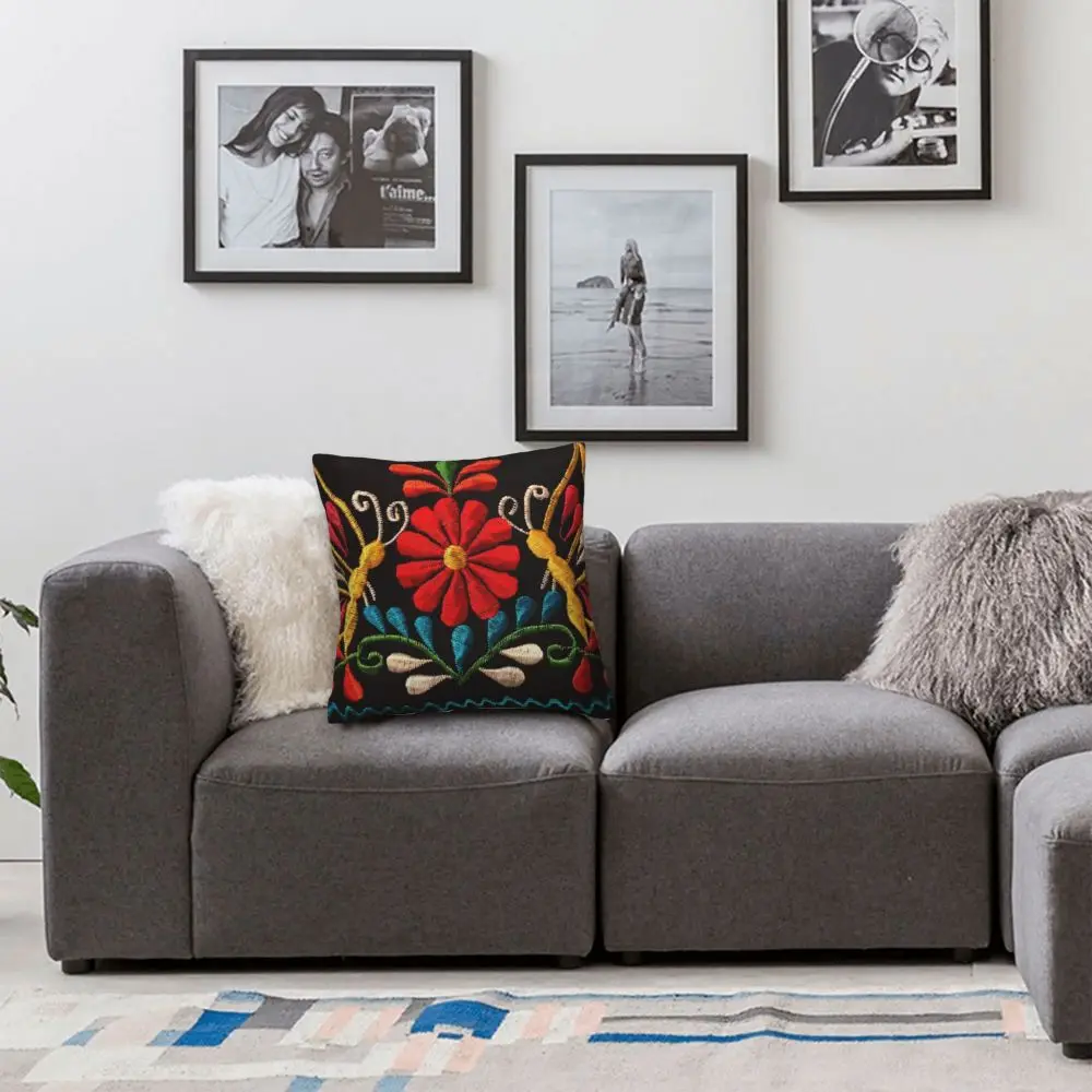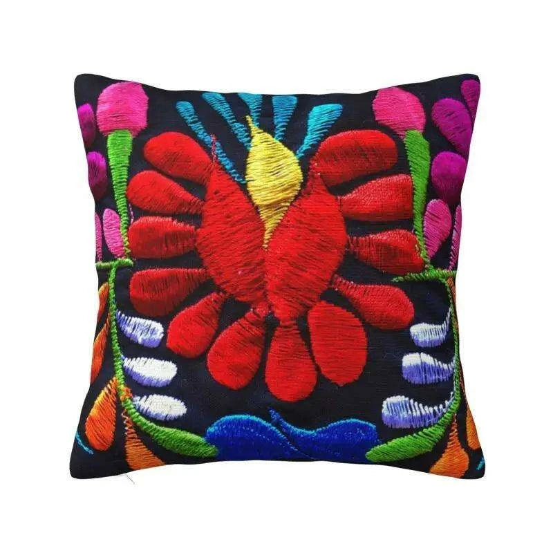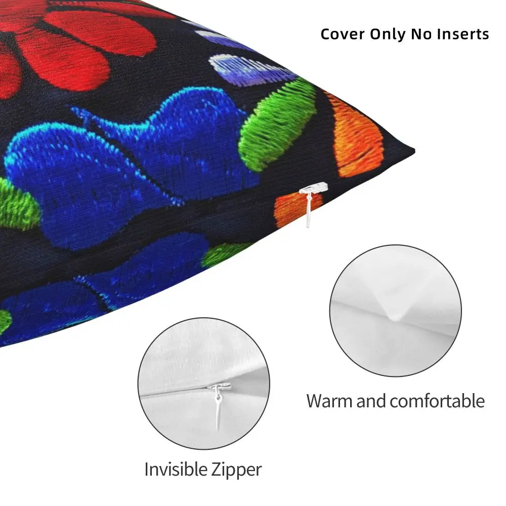 - Colorful Traditional Embroidery: Each cushion cover showcases intricate designs featuring vibrant butterflies and striking flowers, embodying the essence of Mexican artistry.