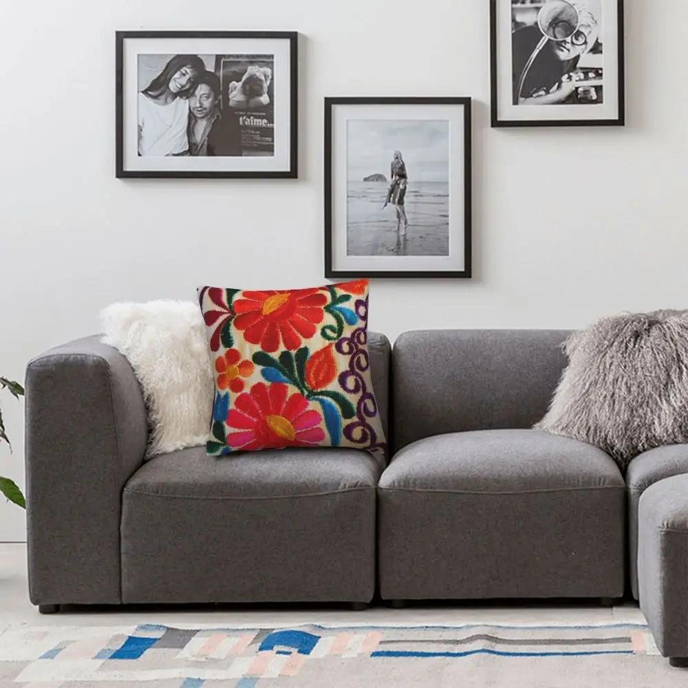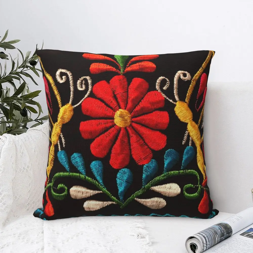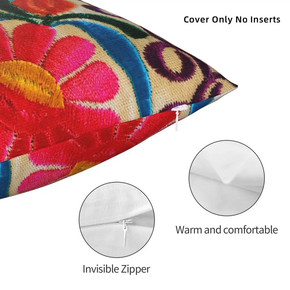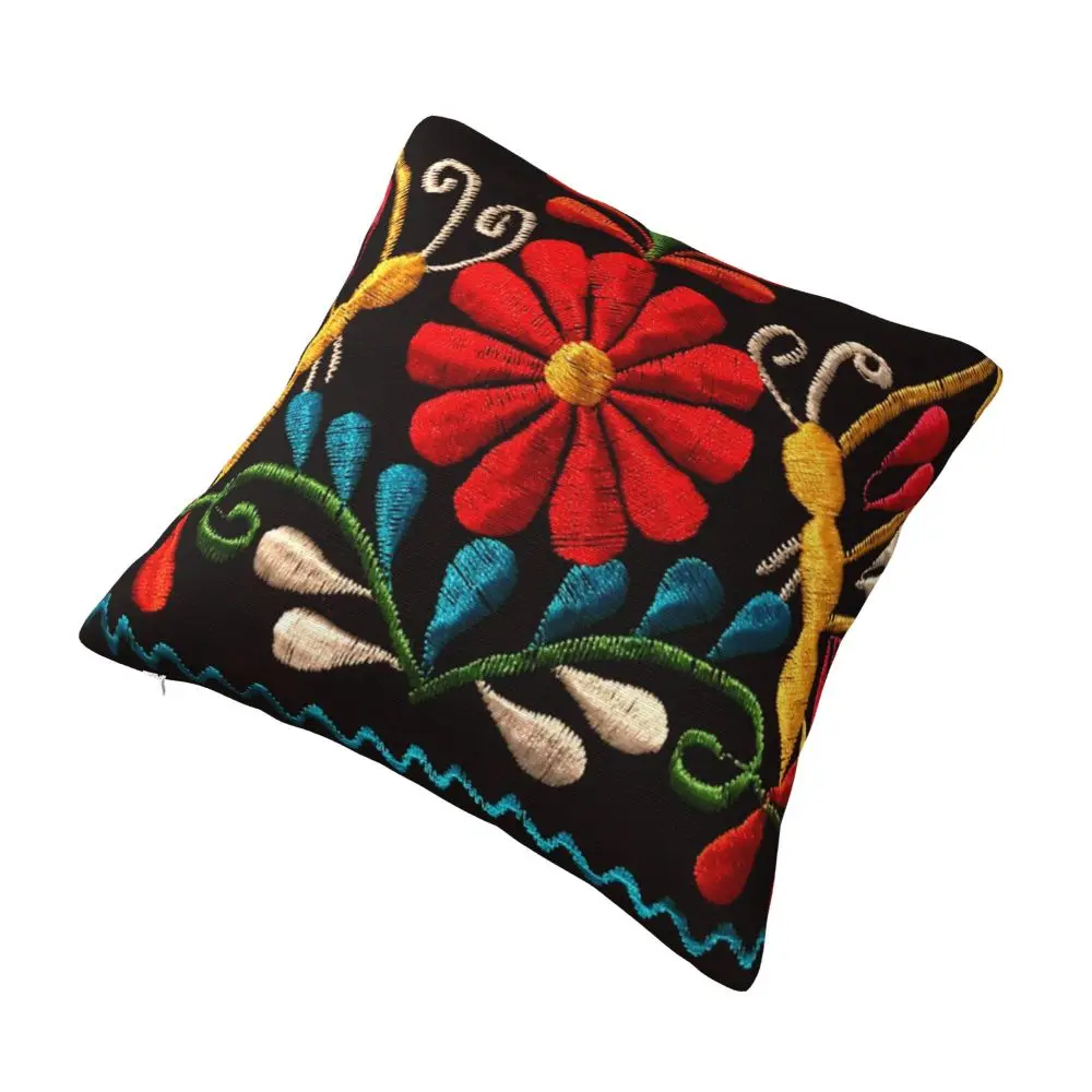 - Colorful Traditional Embroidery: Each cushion cover showcases intricate designs featuring vibrant butterflies and striking flowers, embodying the essence of Mexican artistry.