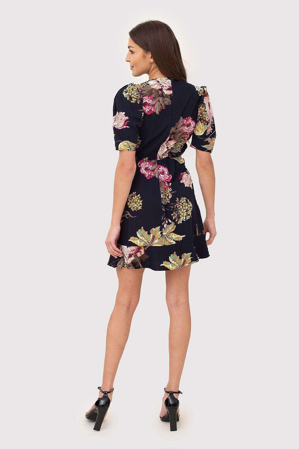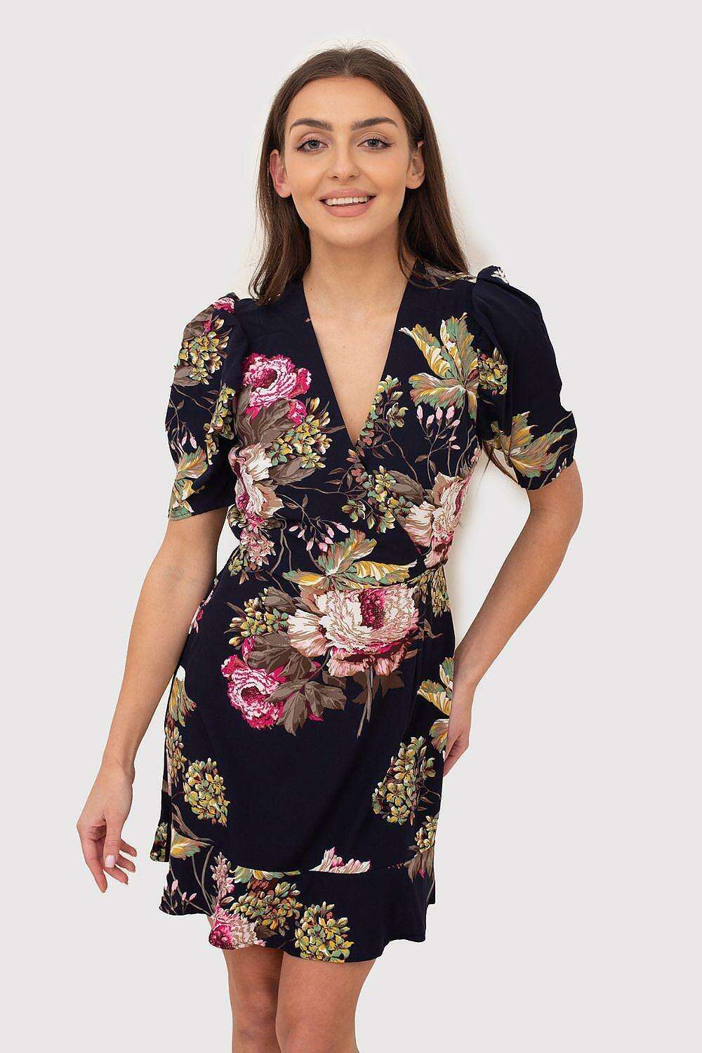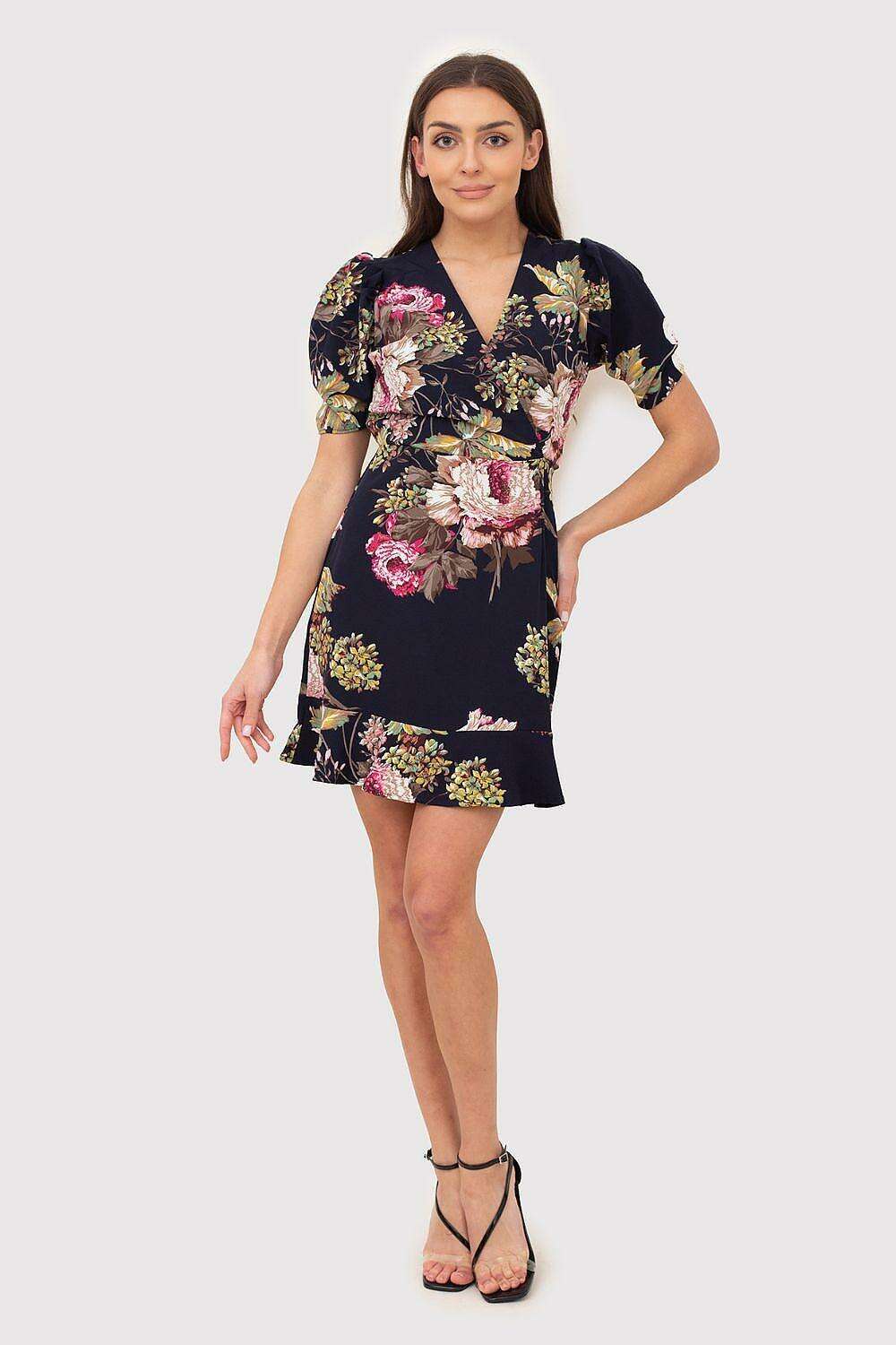 Floral Elegance V-Neck Mini Dress with Back Zip