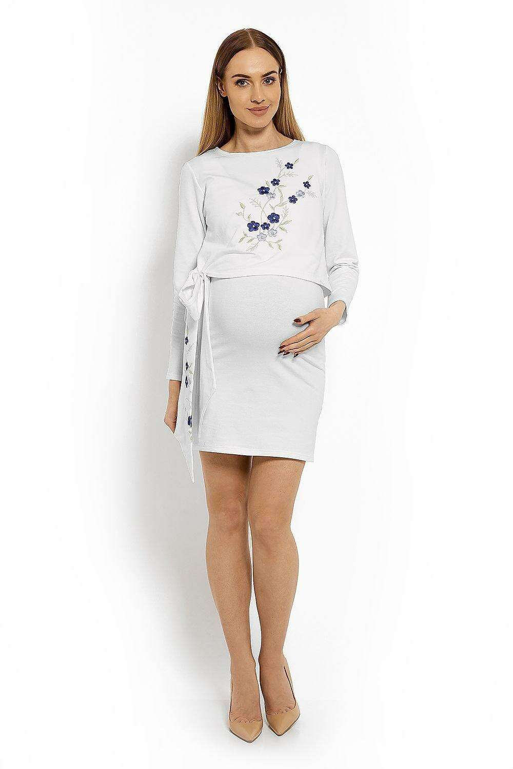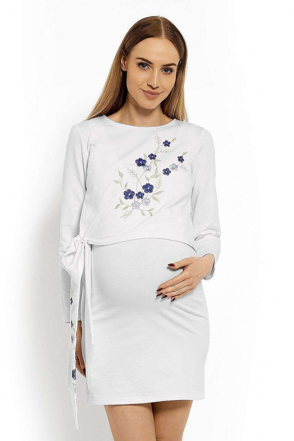 Embroidered Floral Nursing Tunic Dress for Expecting Mothers
