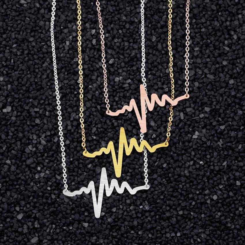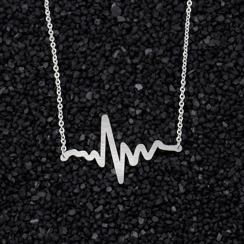 Heartbeat Wave EKG Pendant Necklace in Premium Stainless Steel with Three Elegant Finishes