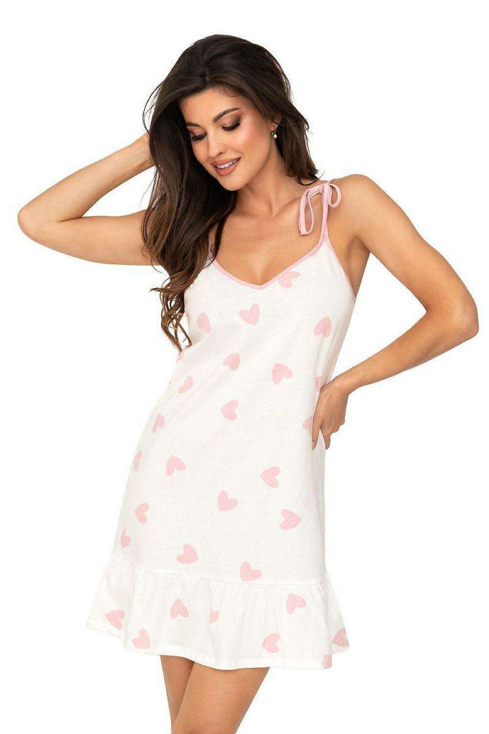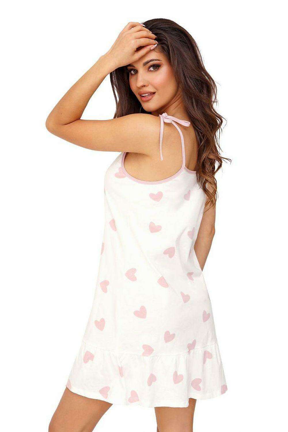 Featuring an enchanting ecru color adorned with delightful pink hearts, this nightgown exudes a romantic flair that adds a touch of sweetness to your evening routine. The V neckline enhances its feminine appeal, while the adjustable tied straps offer a personalized fit for maximum comfort.