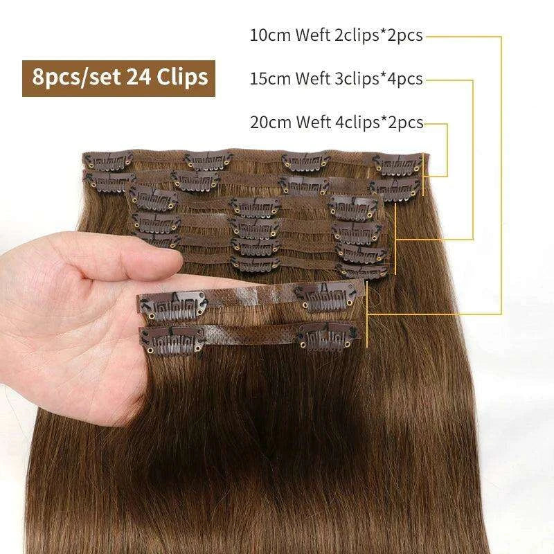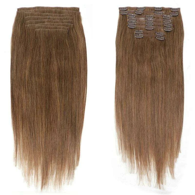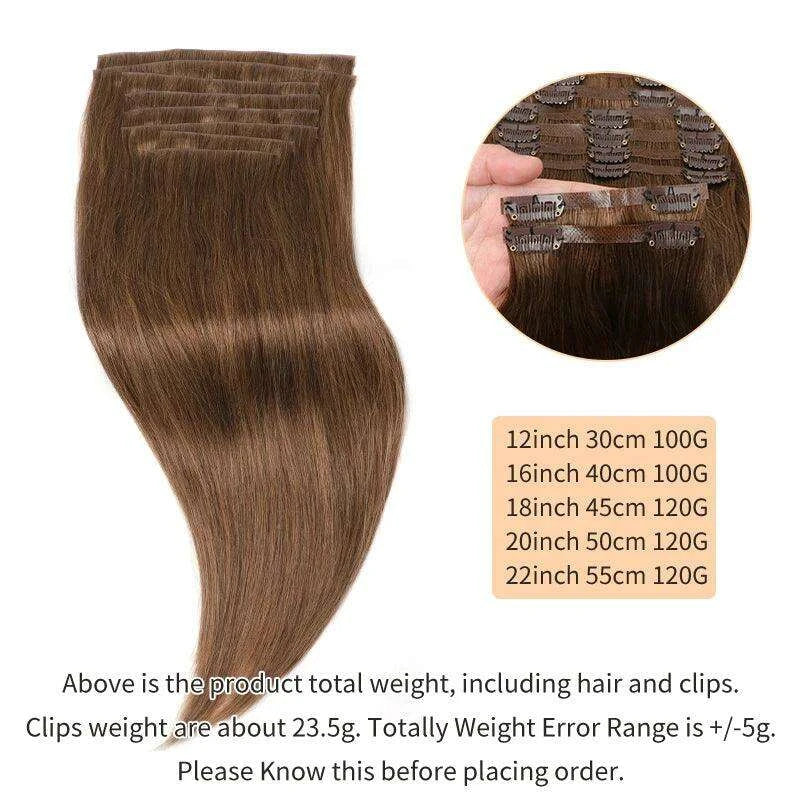 Flawless Seamless Clip-In Human Hair Extensions - 8Pcs Set, 100G/120G, 12-22 Inch Lengths