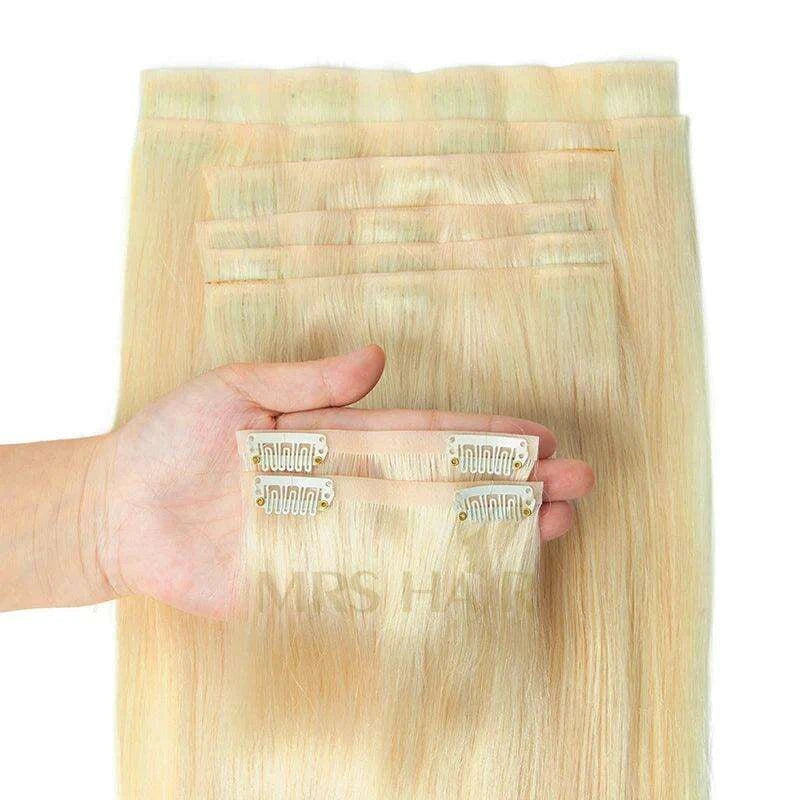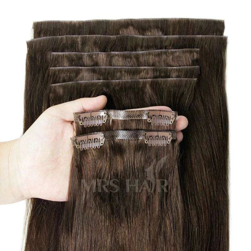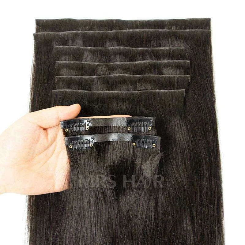 Transform Your Look Instantly with our Flawless Seamless Clip-In Human Hair Extensions. This exquisite 8-piece set is the perfect solution for those looking to elevate their hairstyle effortlessly. Available in both 100G and 120G weights, with lengths ranging from 12 to 22 inches, our extensions are designed for quality and comfort in your hair routine.