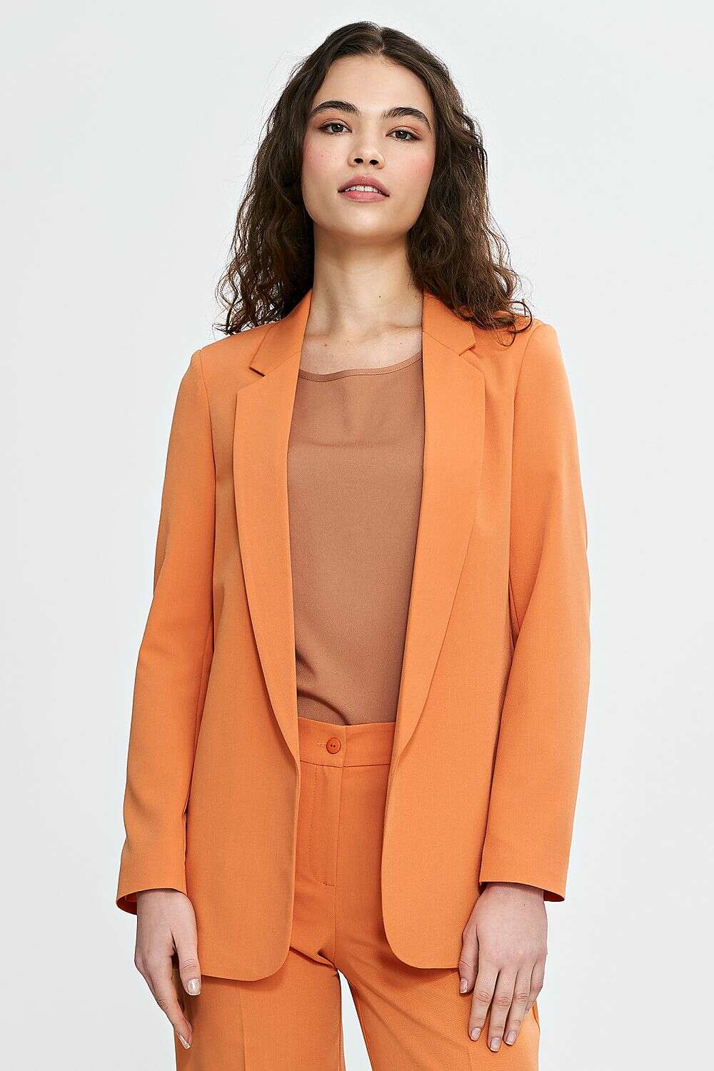 Orange Womens Blazer Jacket 210079 With Lapels Loose Fit