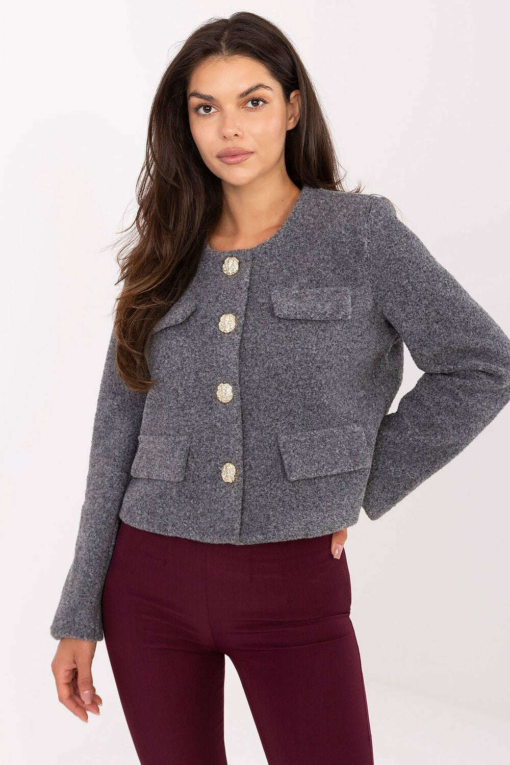 Womens Grey Short Jacket With Classic Front Button