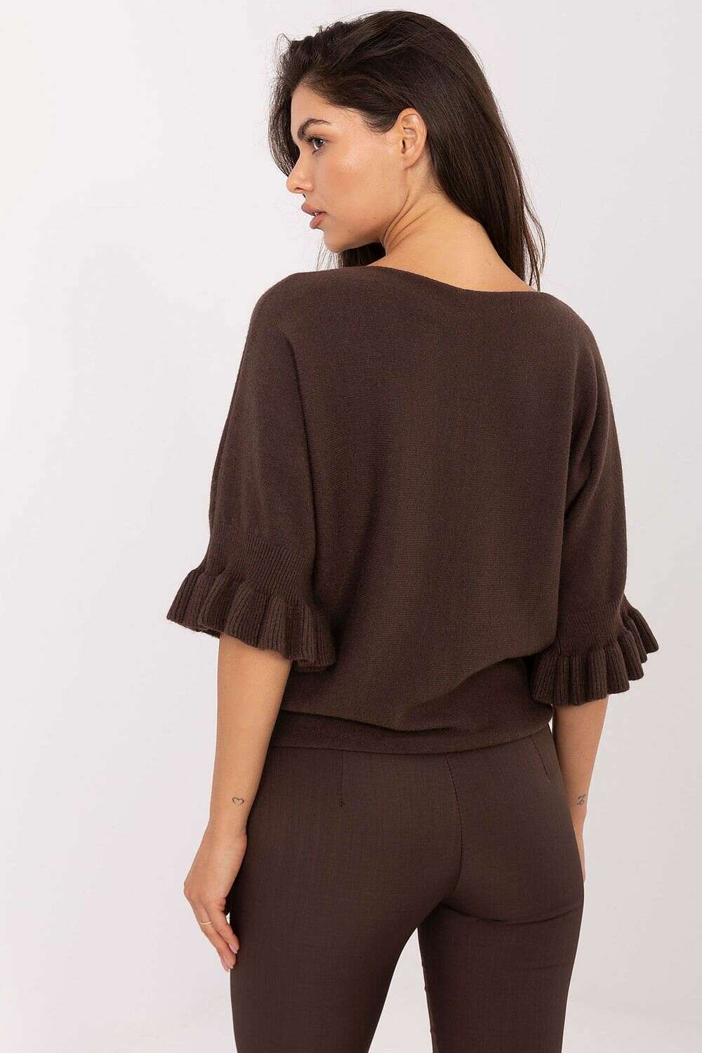 Meet Jumper model 216665, an elegant women's sweater designed for both everyday wear and special occasions. In a rich brown shade, this standard-length jumper layers beautifully with dresses, skirts, or denim.