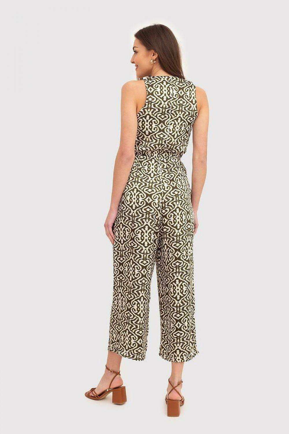 Khaki and Cream Sleeveless Jumpsuit with Tie Detail by Ax Paris