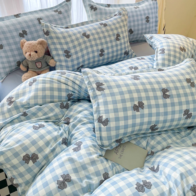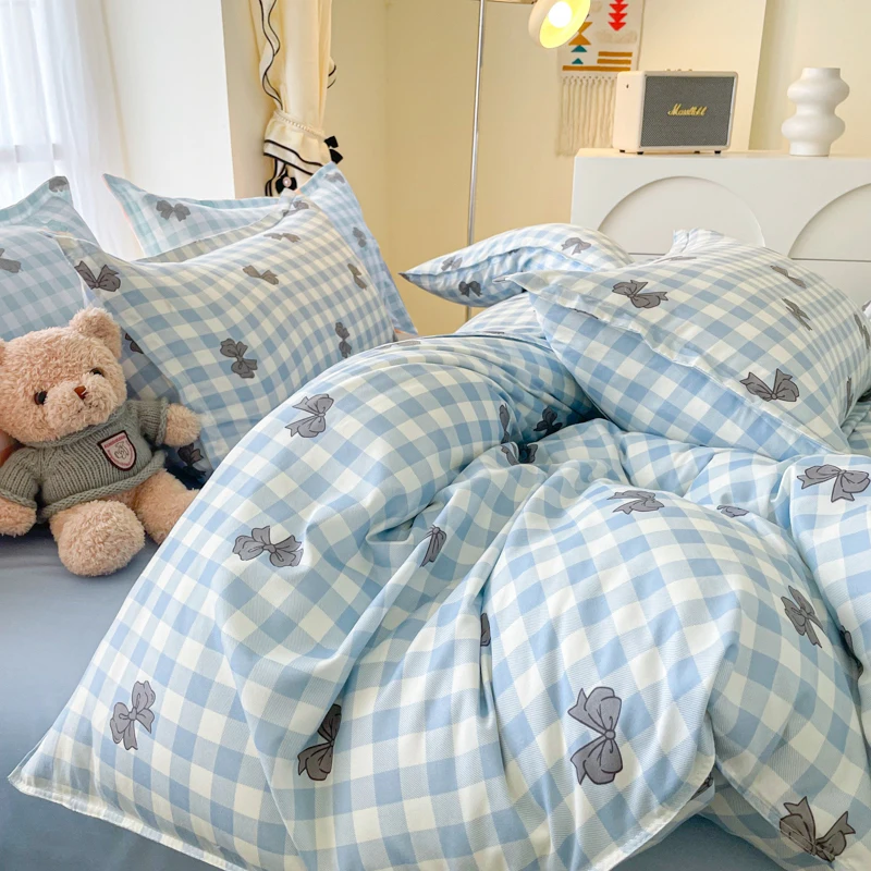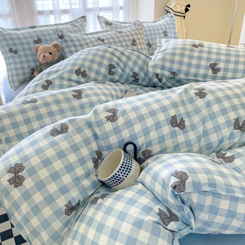 Korean Style Blue Plaid Duvet Cover Set for Kids