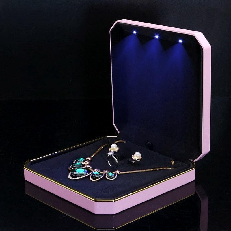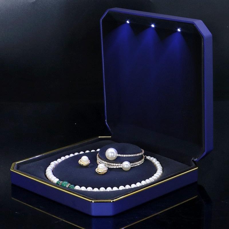 Transform the way you store and showcase your jewelry with our Illuminated Jewelry Organizer Box. This innovative storage solution features built-in LED lighting that enhances the beauty of your precious pieces, making it not just a utility but a stunning display.