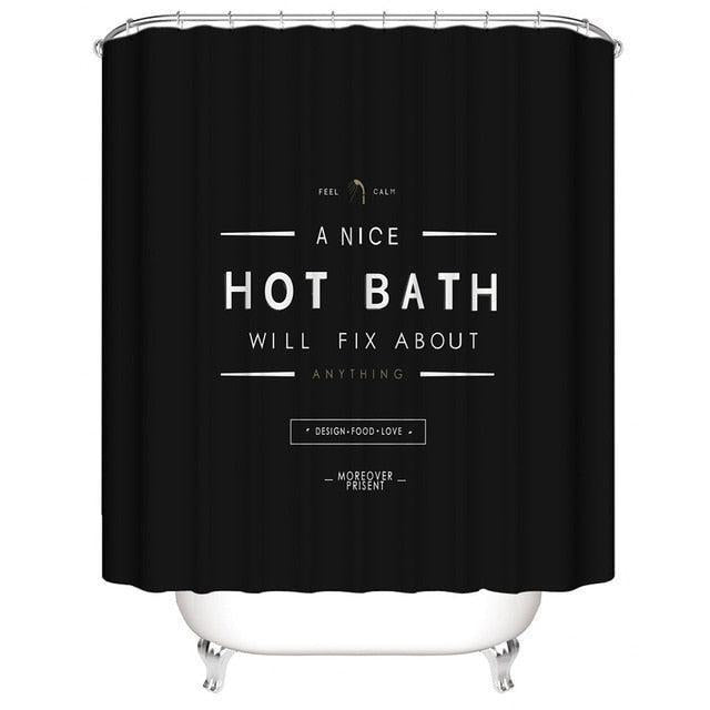 Elegant Black Shower Curtain with Whimsical Hot Bath Artwork