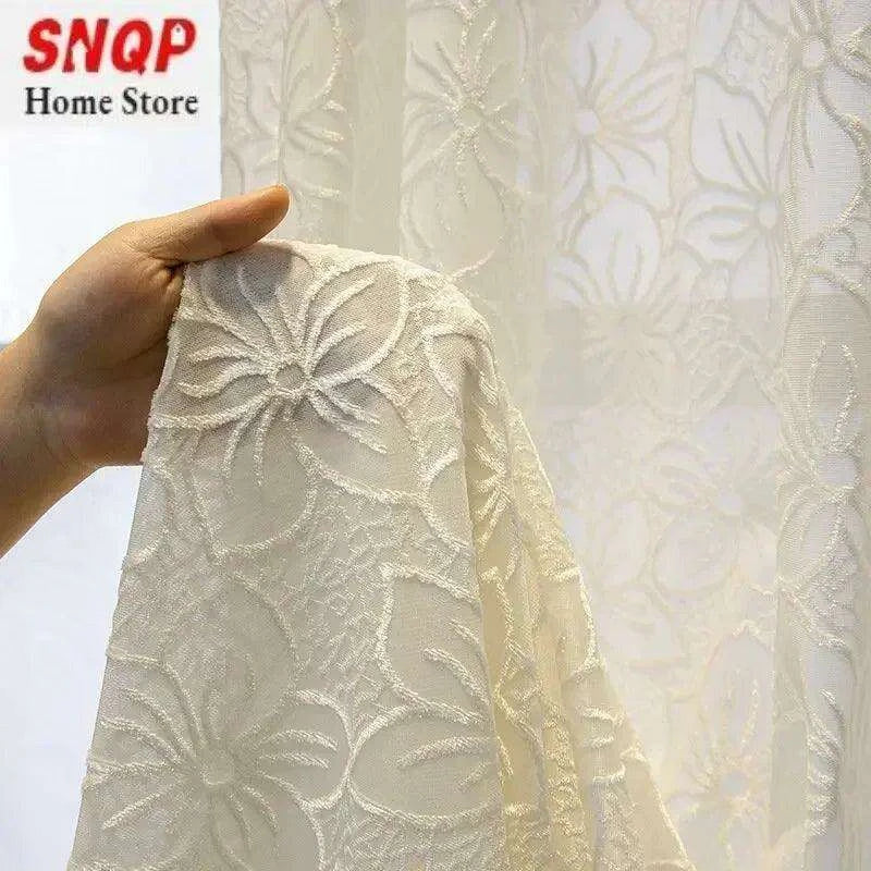 Transform your living space into a luxurious retreat with our elegant customizable white tulle and lace curtains. Experience the perfect blend of beauty and functionality today!
