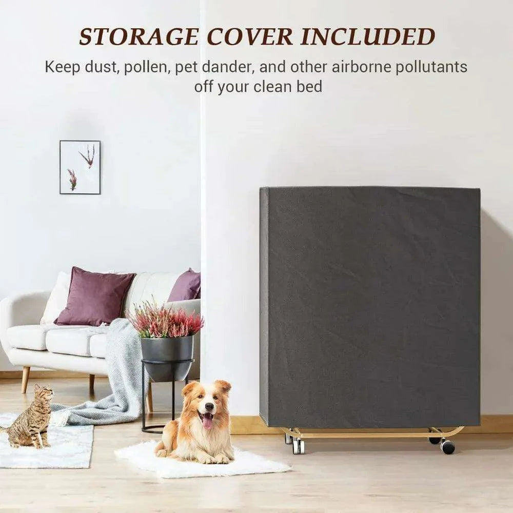 When not in use, the bed folds down to just 11.6 inches thick, allowing for easy storage in closets or tight spaces. Equipped with smooth wheels, it can be effortlessly transported from room to room by a single person.