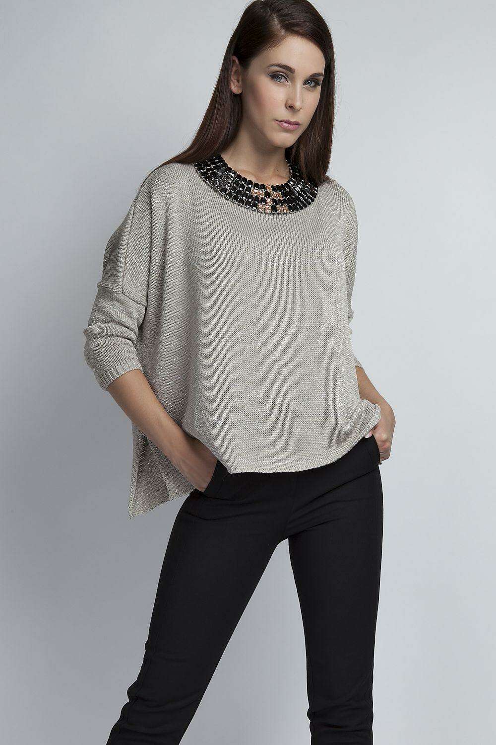 Elegant Oversized Metallic Knit Jumper MKM