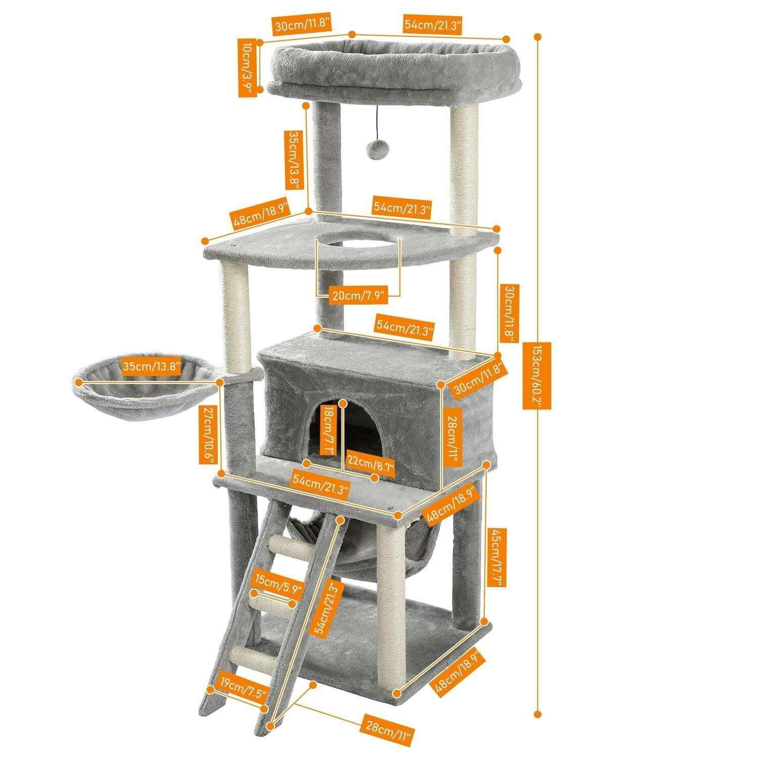 - Condo, Tube, and Hammock Design: Thoughtfully tailored to satisfy your kitty's curiosity and need for comfort, enhancing their overall well-being.