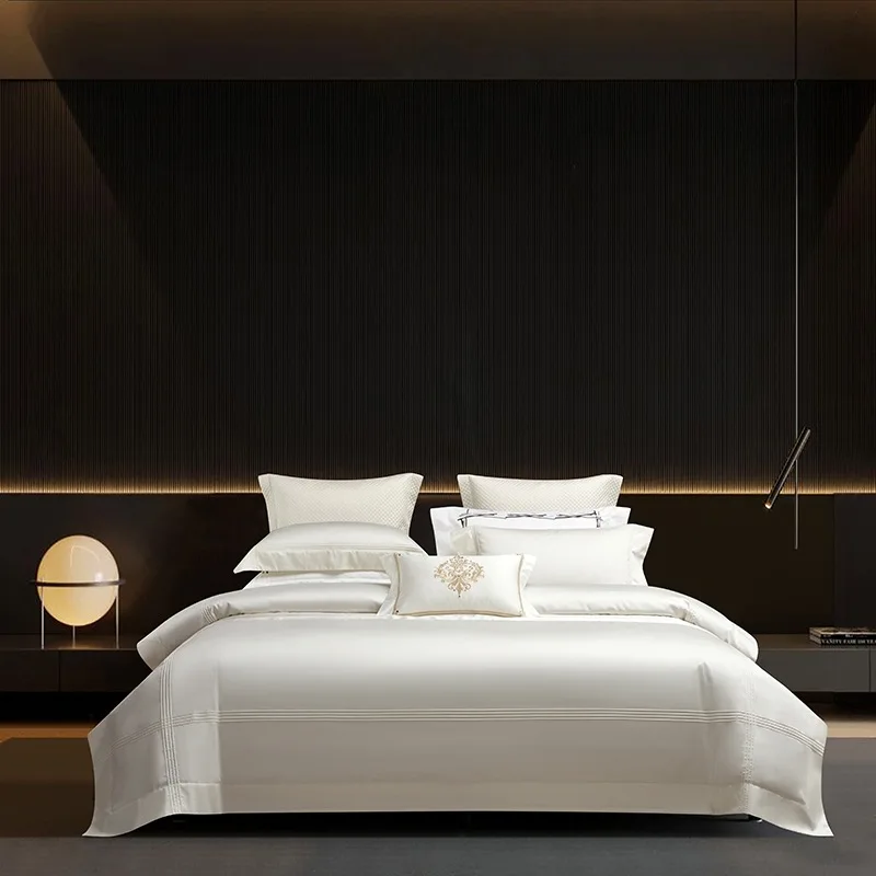 Elevate your bedroom to a realm of tranquility with the Luxurious Satin Tencel Bed Sheet and Quilt Cover Set. This exquisite 4-piece collection includes everything you need for a cozy and stylish sleep environment, complete with two plush pillowcases that promise to cradle your head in comfort.
