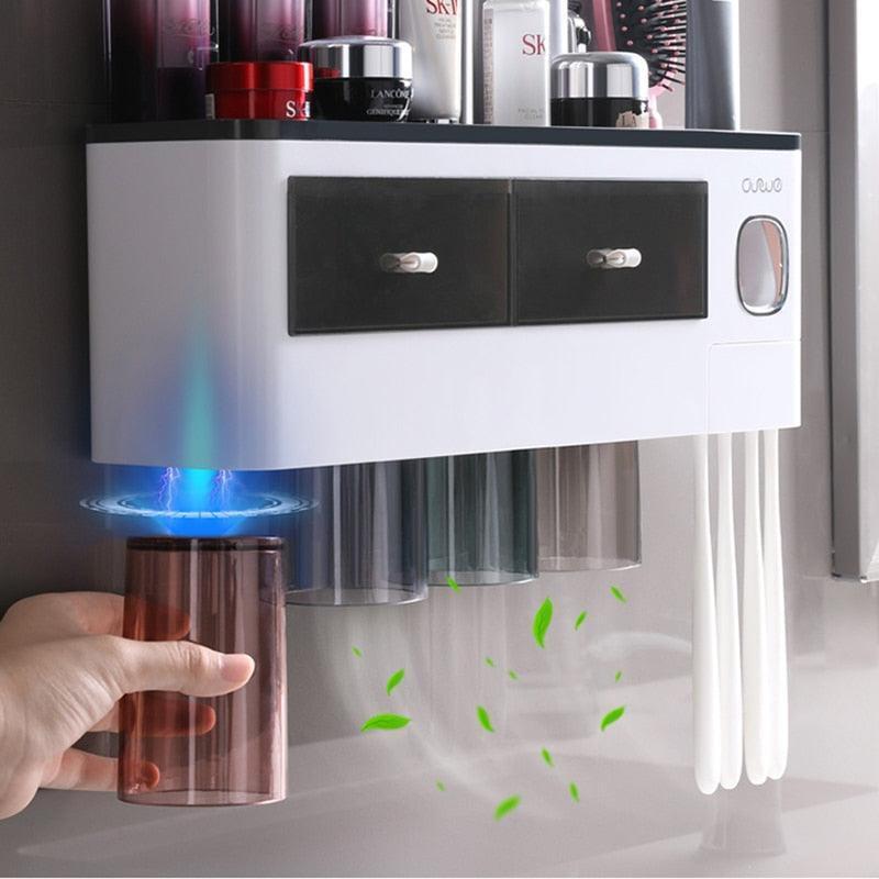 Magnetic Toothbrush and Toothpaste Storage System - Elegant Dustproof Organizer for Modern Bathrooms