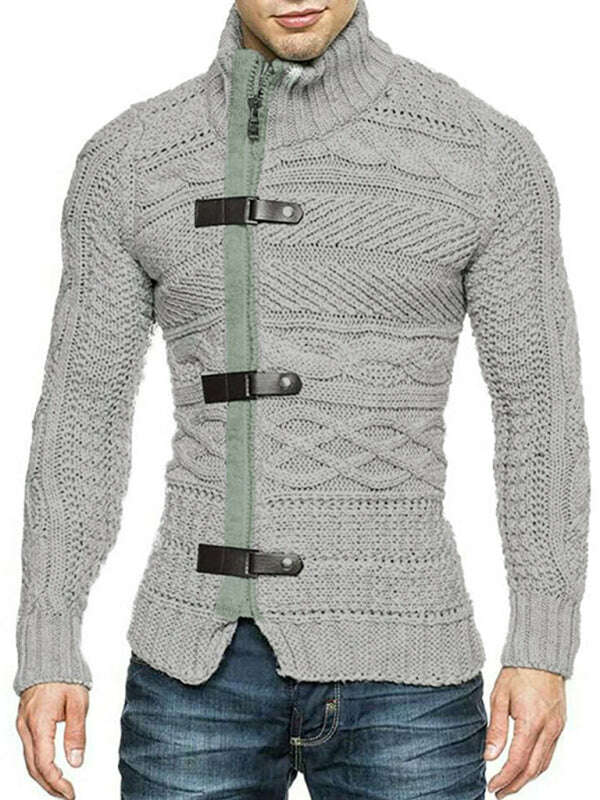 Men's Leather Button Long Sleeve Knitted Cardigan Jacket