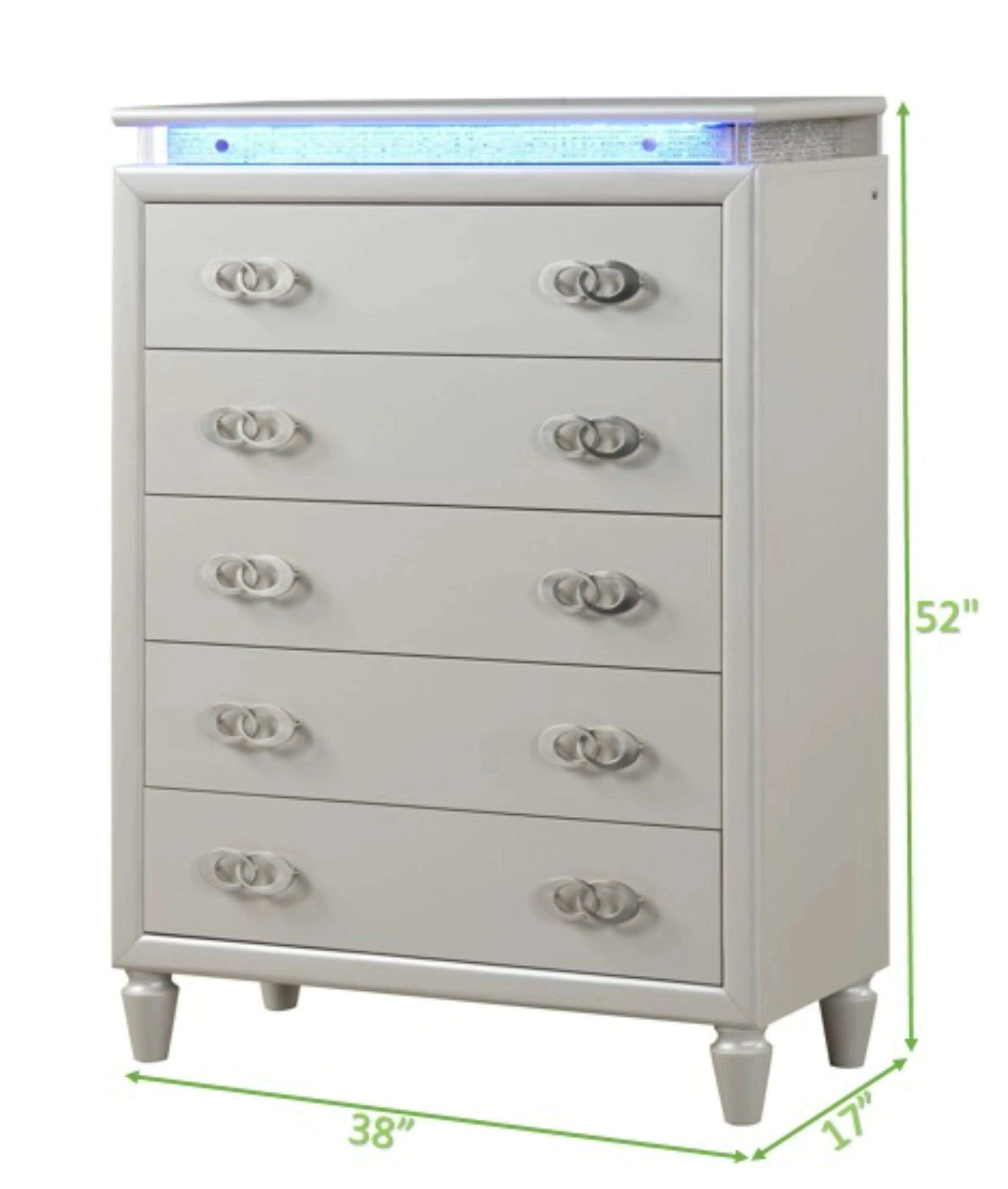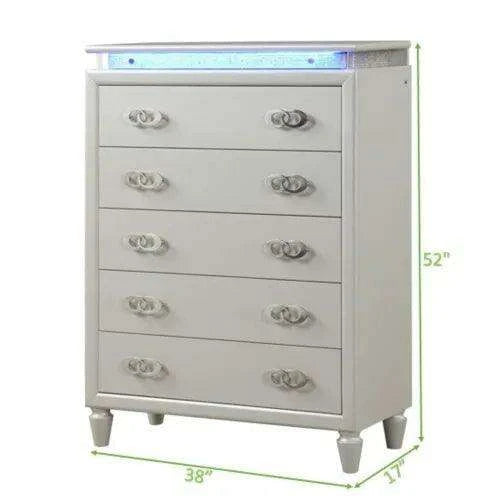 Milky White Modern LED Bedroom Set - Elegant Design with Ample Storage