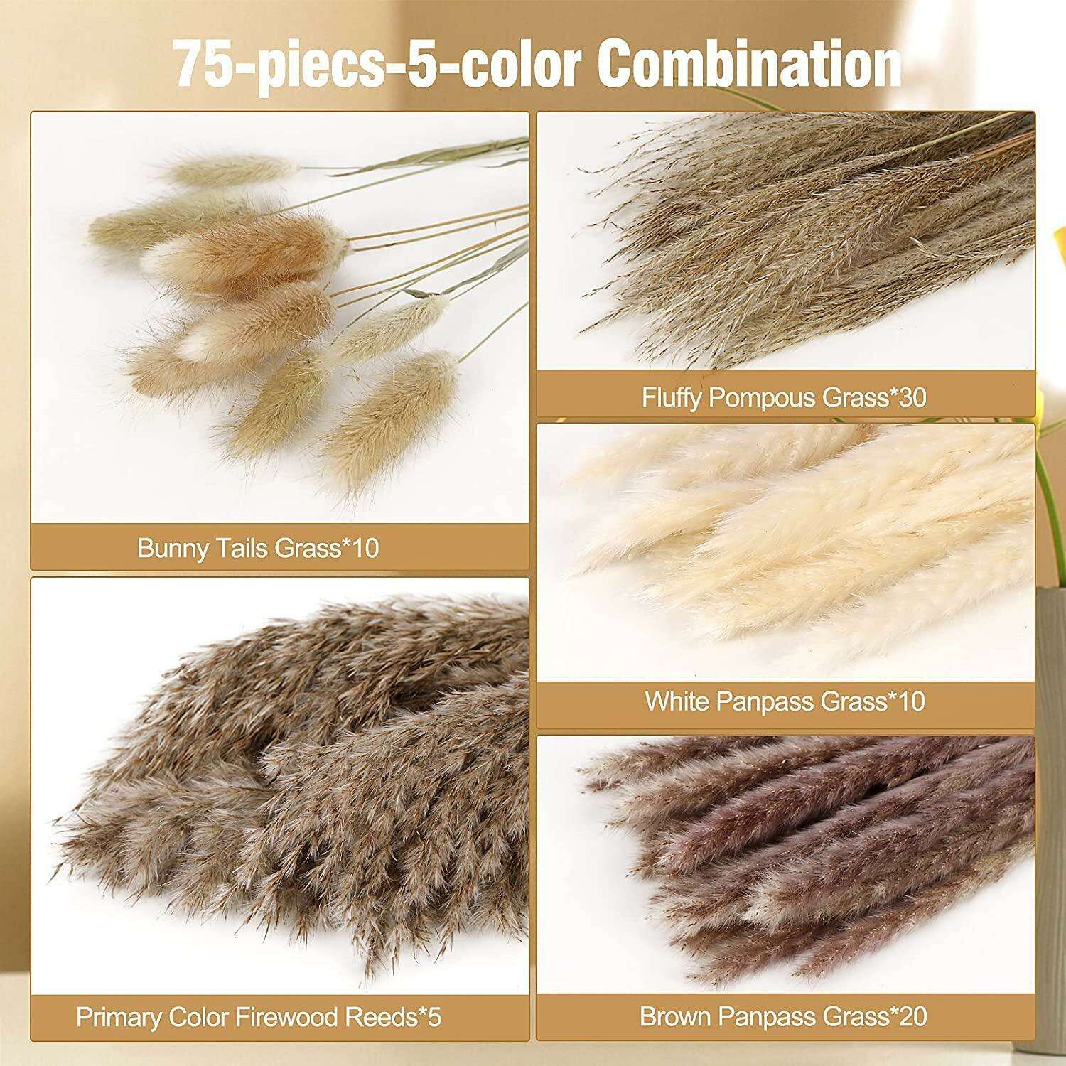 Natural Dried Pampas Grass Bouquet Collection - 75 Stems