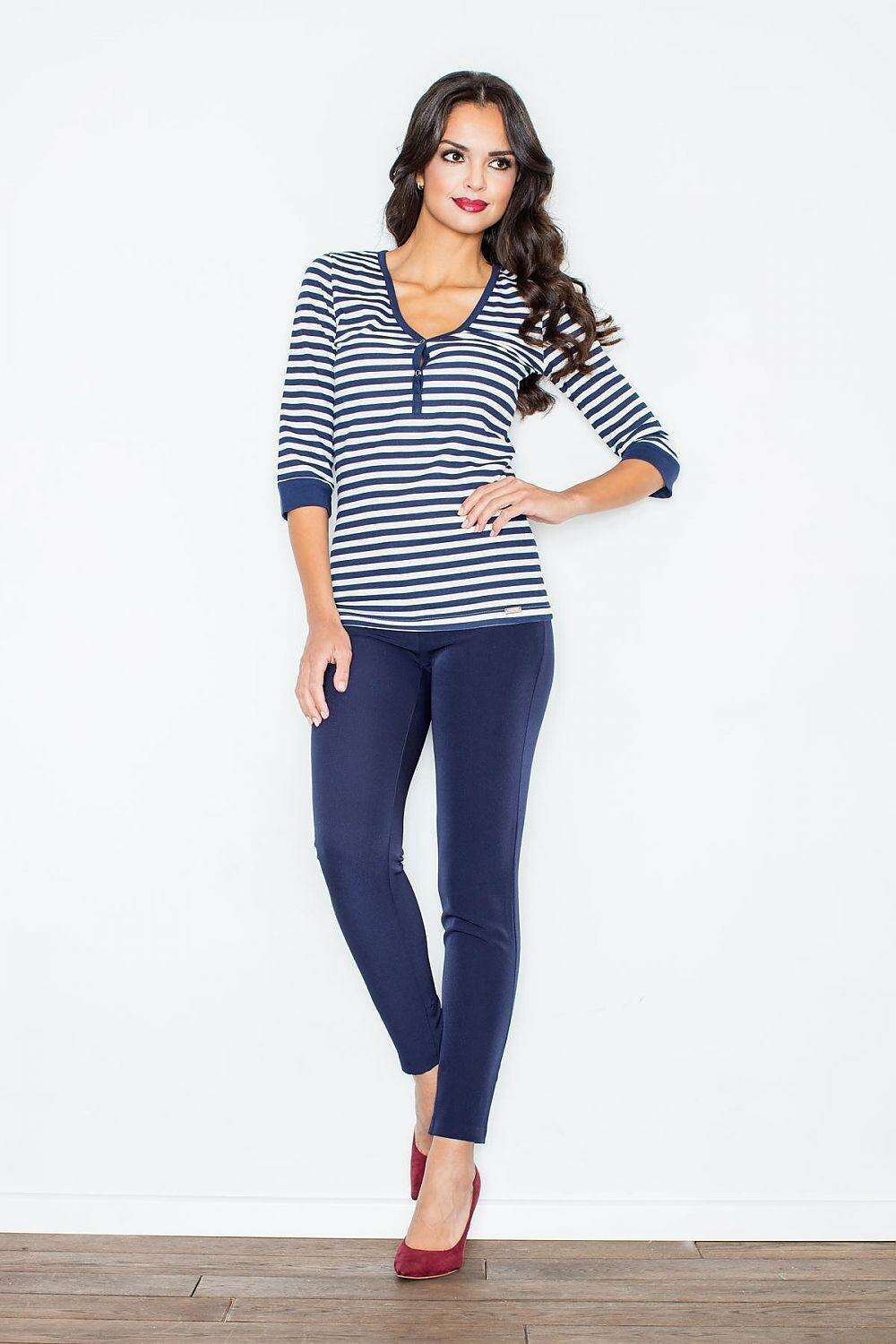 Elevate your summer wardrobe with this navy striped blouse that combines sophistication with ease of wear. Its versatility makes it suitable for both casual outings and formal events, making it an essential addition to your collection.