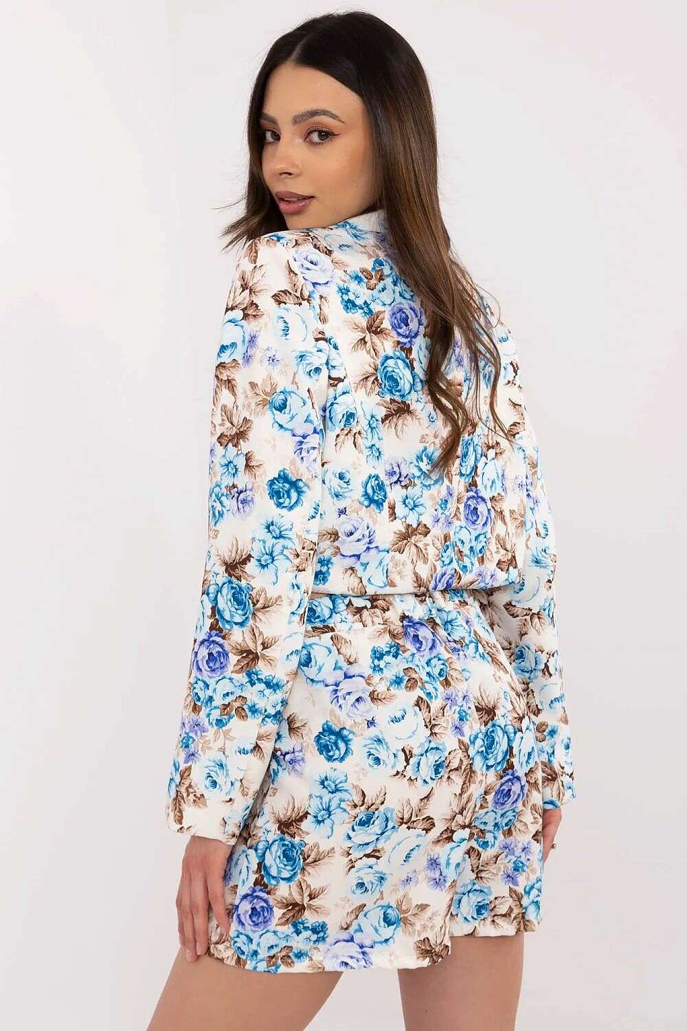 Introducing Set model 212278 — a unique women's set that blends elegance with a hint of girlish charm. This ensemble pairs a short, cropped blazer with a floral-patterned skirt-shorts in a fashionable pink palette, making it ideal for everyday wear, work, formal meetings, or parties.