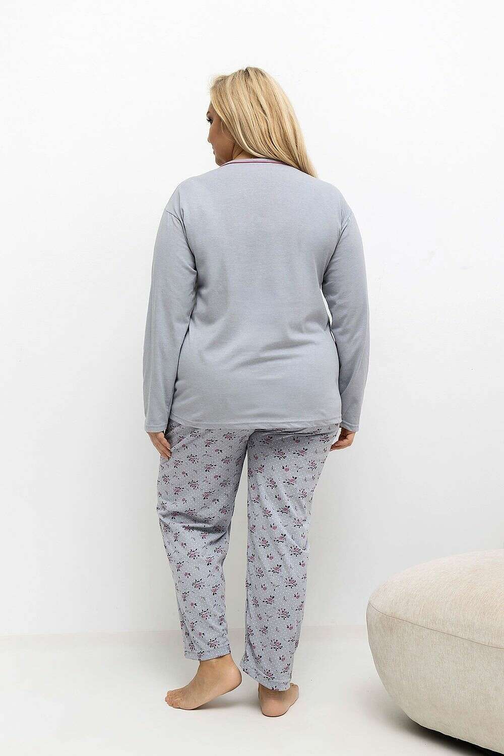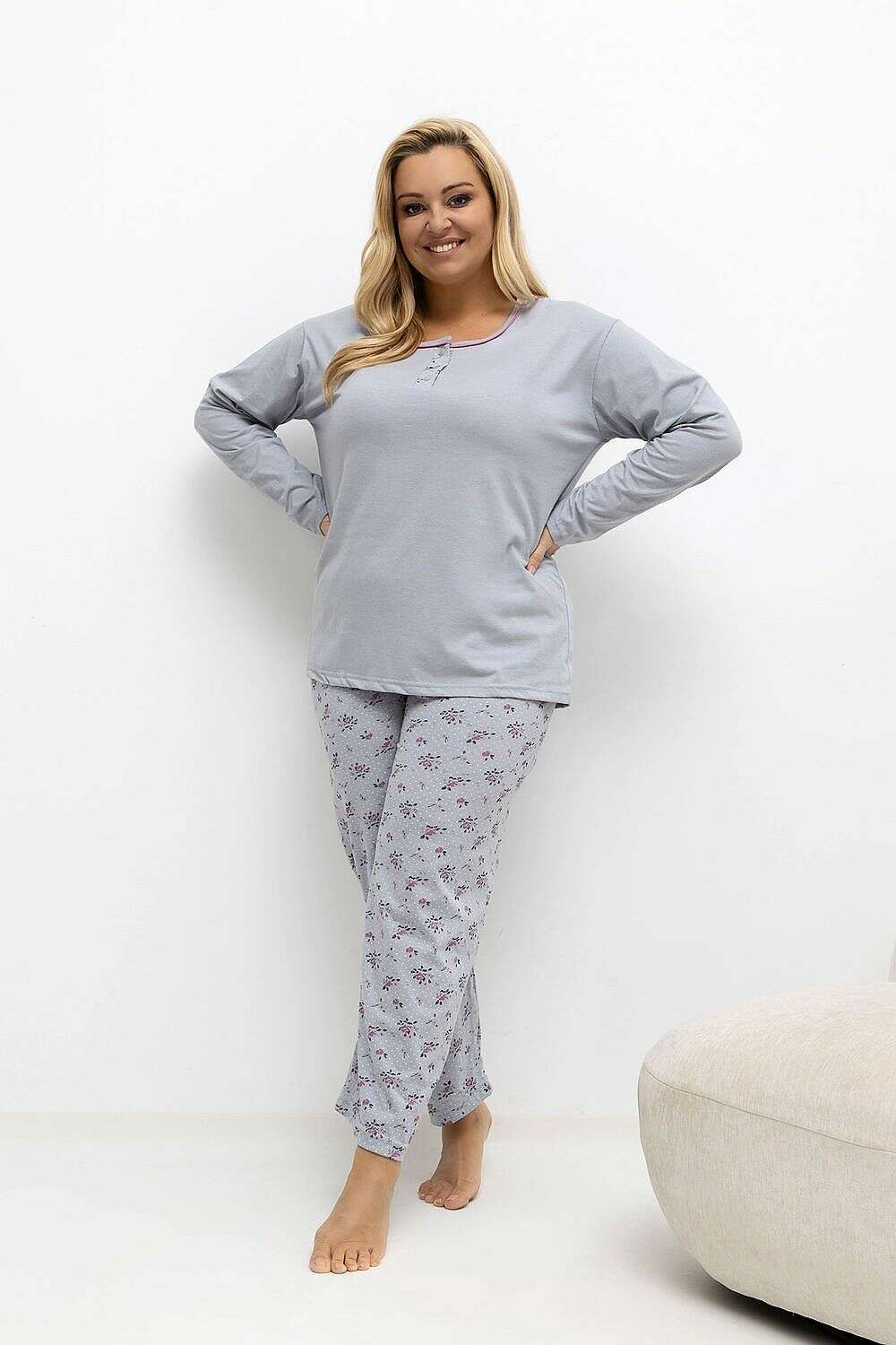 Plus Size Cotton Pajama Set – Floral Polka Dot Blouse & Pants