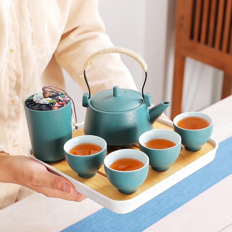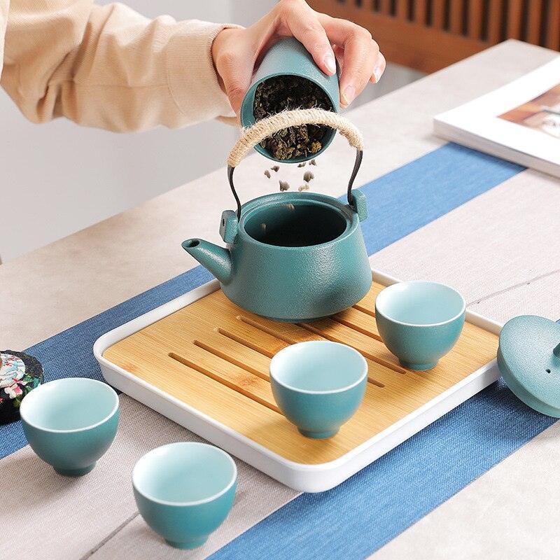 Japanese Zen Tea Set for Travelers - Handcrafted Teapot and Bamboo Cups