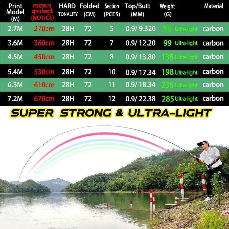 Premium Carbon Fiber Telescopic Fishing Rod for Freshwater Adventures - Adjustable Lengths from 2.7 to 7.2 Meters