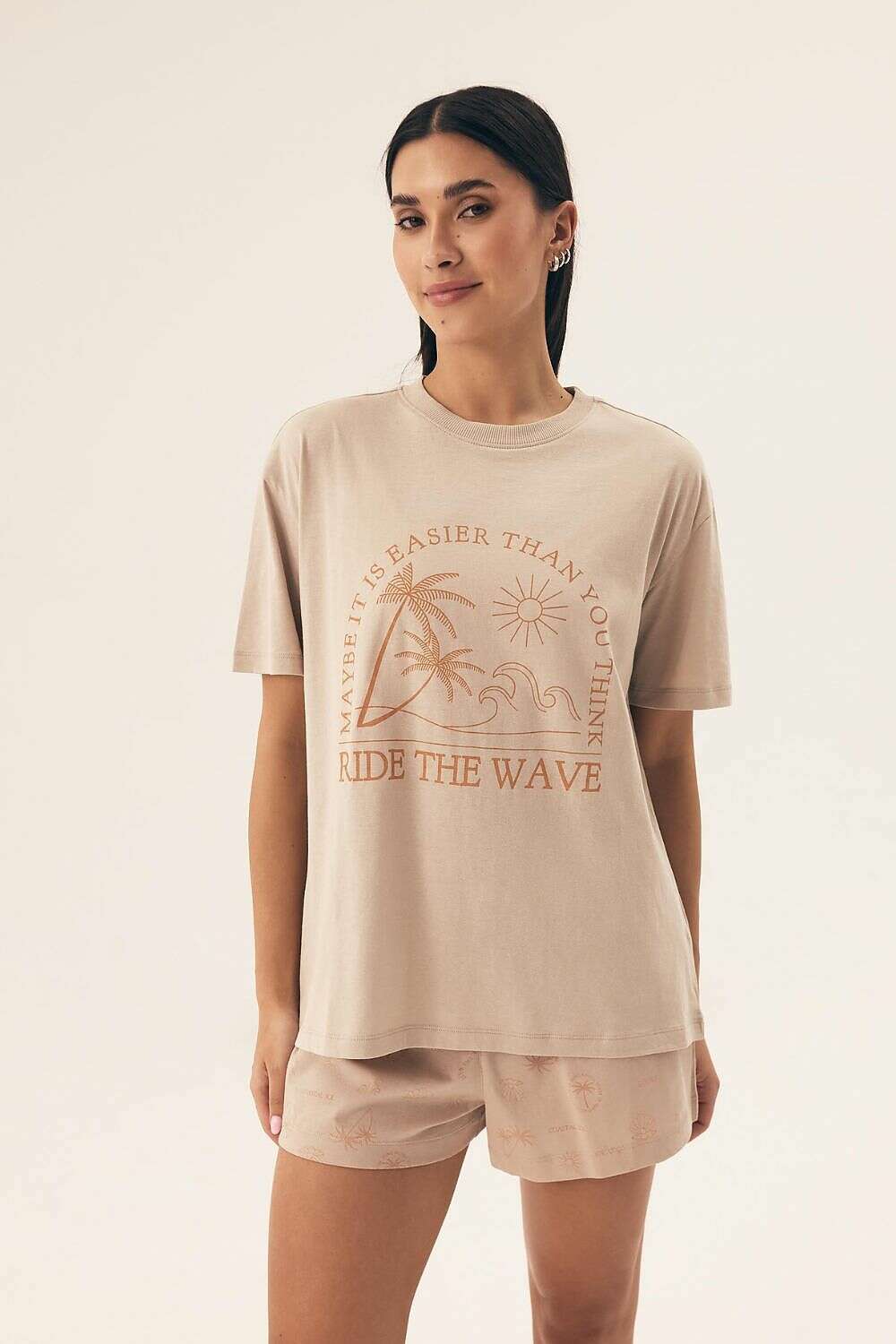 Pyjama Set With Printed Top And Shorts offers stylish comfort for women who value relaxed, breathable nightwear. Crafted from 100% cotton, this set keeps you cool and comfortable all night long with a loose, relaxed fit and a short-sleeved top featuring a round neckline and an on-trend print that complements the printed shorts.