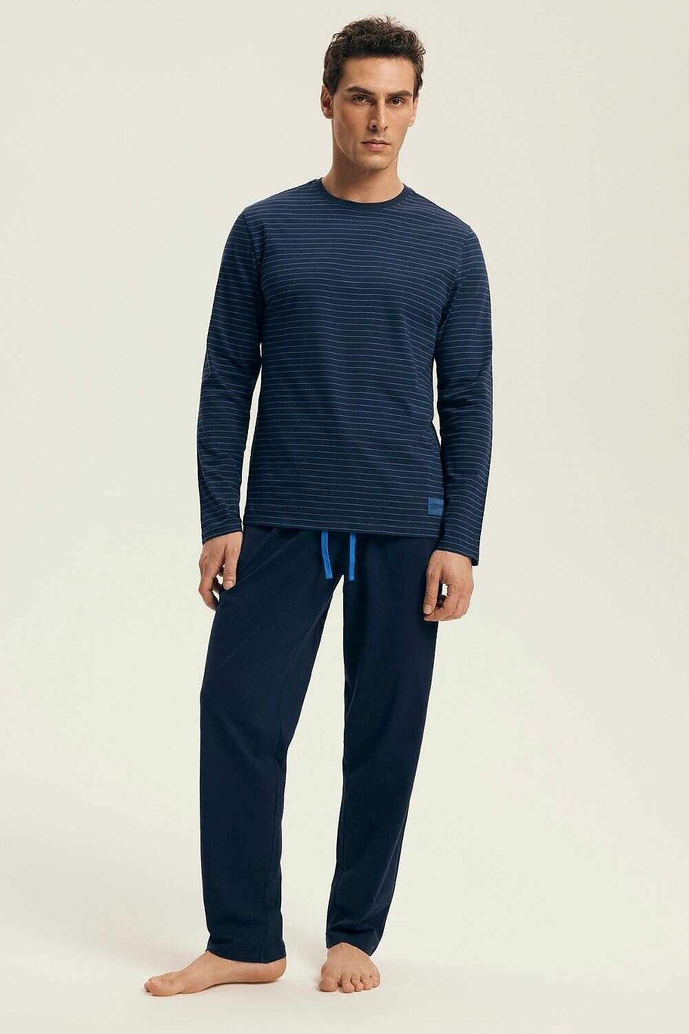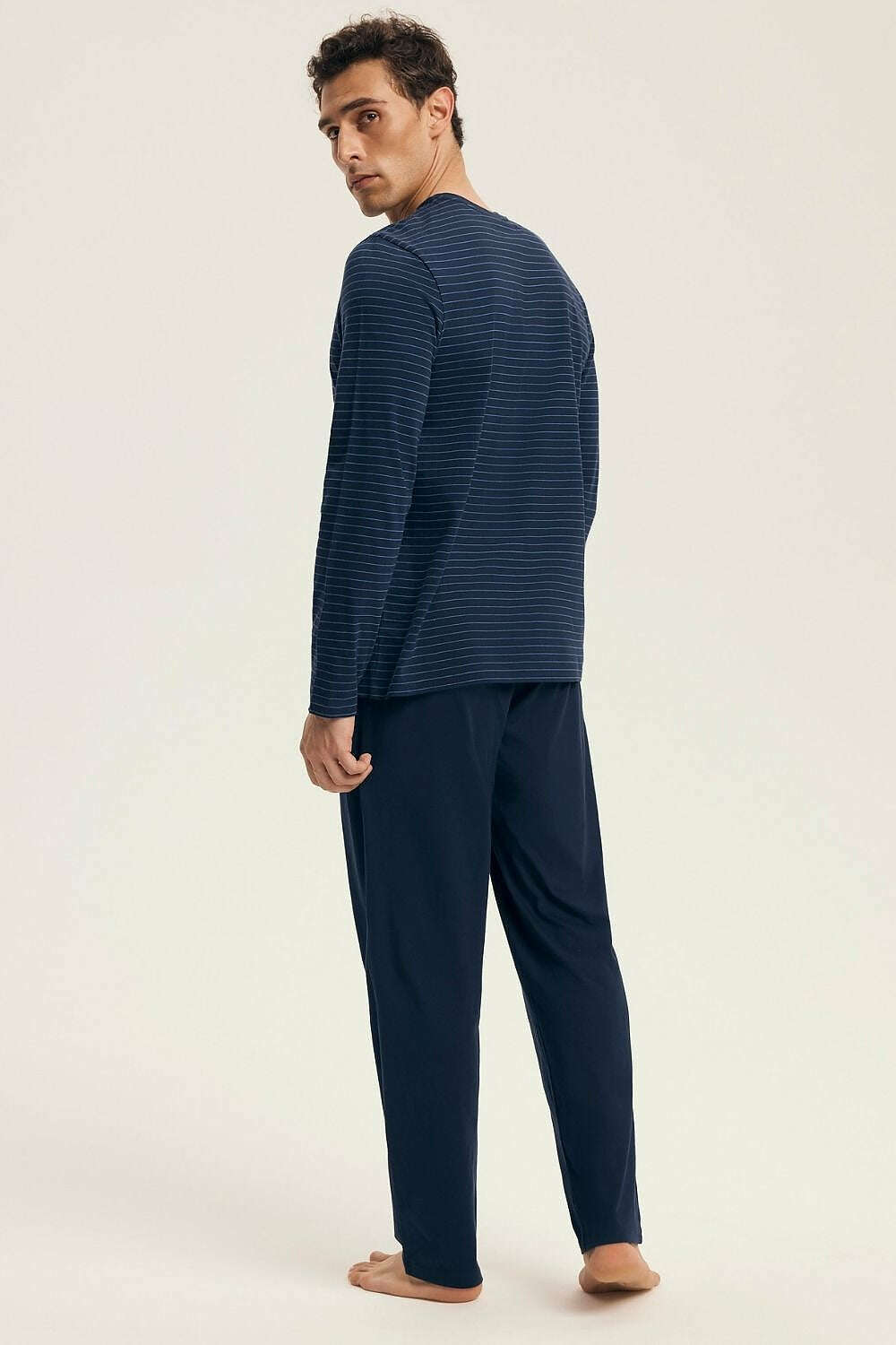 Men’s Striped Cotton Pajama Set – Long Sleeve Shirt & Drawstring Pants