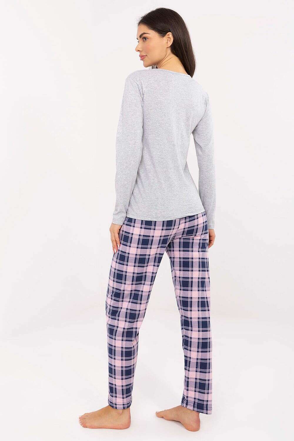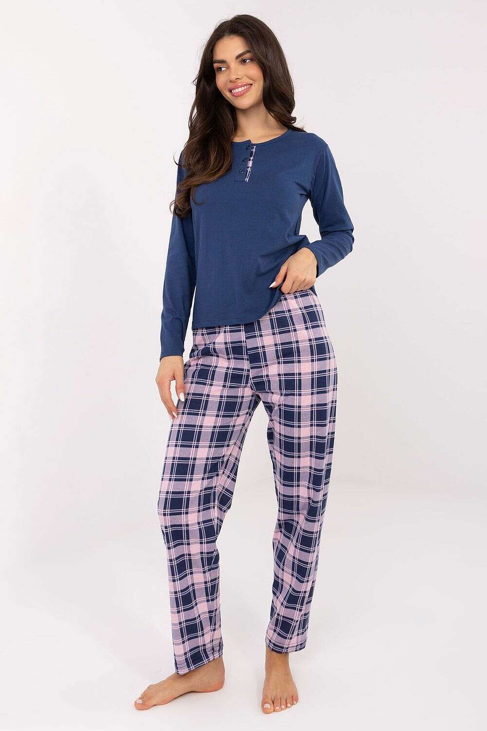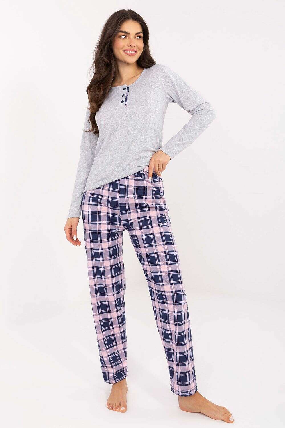 Women’s Cotton Pajama Set with Checkered Pants & Button Top