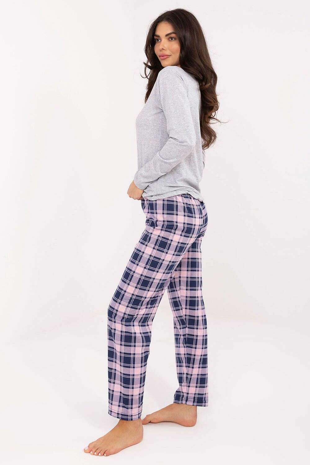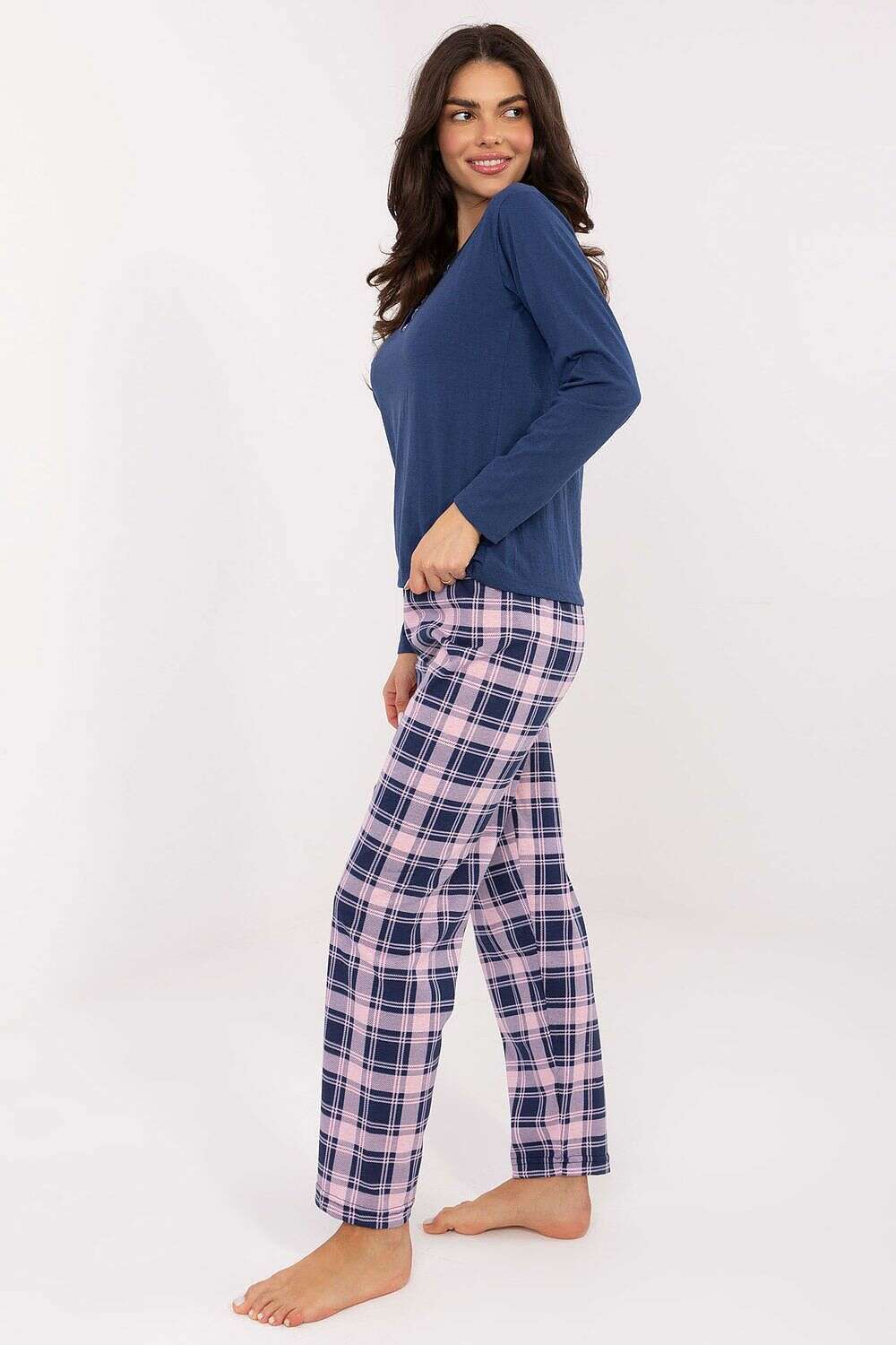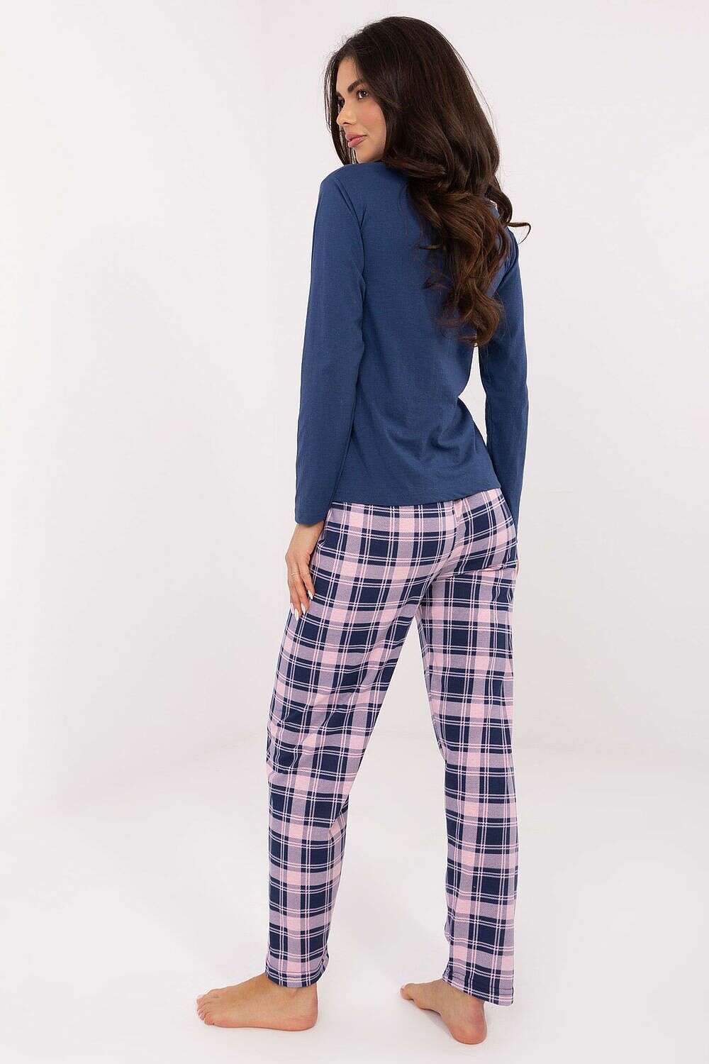 Women’s Cotton Pajama Set with Checkered Pants & Button Top