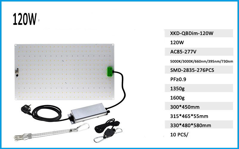Quantum Plate Plant Grow Light 120W Full Spectrum With Remote — a high-efficiency LED fixture engineered for indoor gardens, hydroponics, and seed starting. This 120W model delivers a full-spectrum output designed to maximize photosynthesis across all growth stages while keeping energy use low.