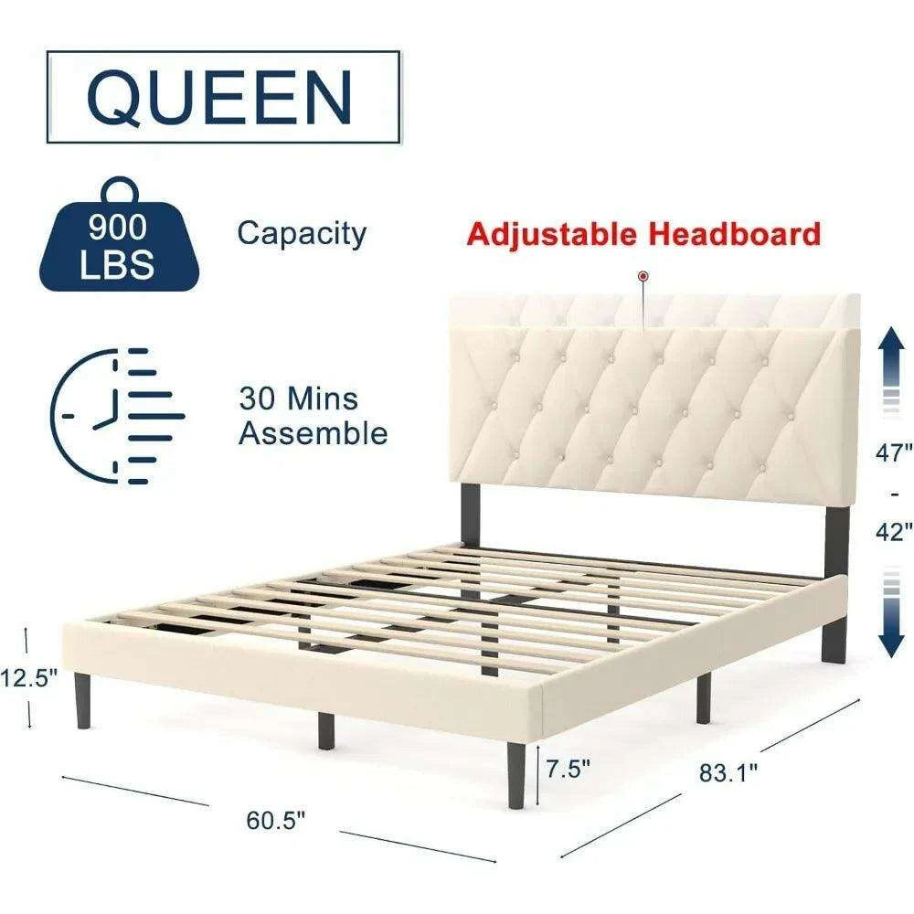 QuietDream Versatile Adjustable Bed Frame with Sturdy Construction and Silent Operation - Beige..