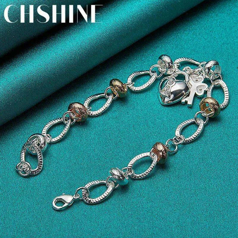 Elegant 925 Sterling Silver Heart Lock Clover Bracelet with Sparkling Zircon Stones