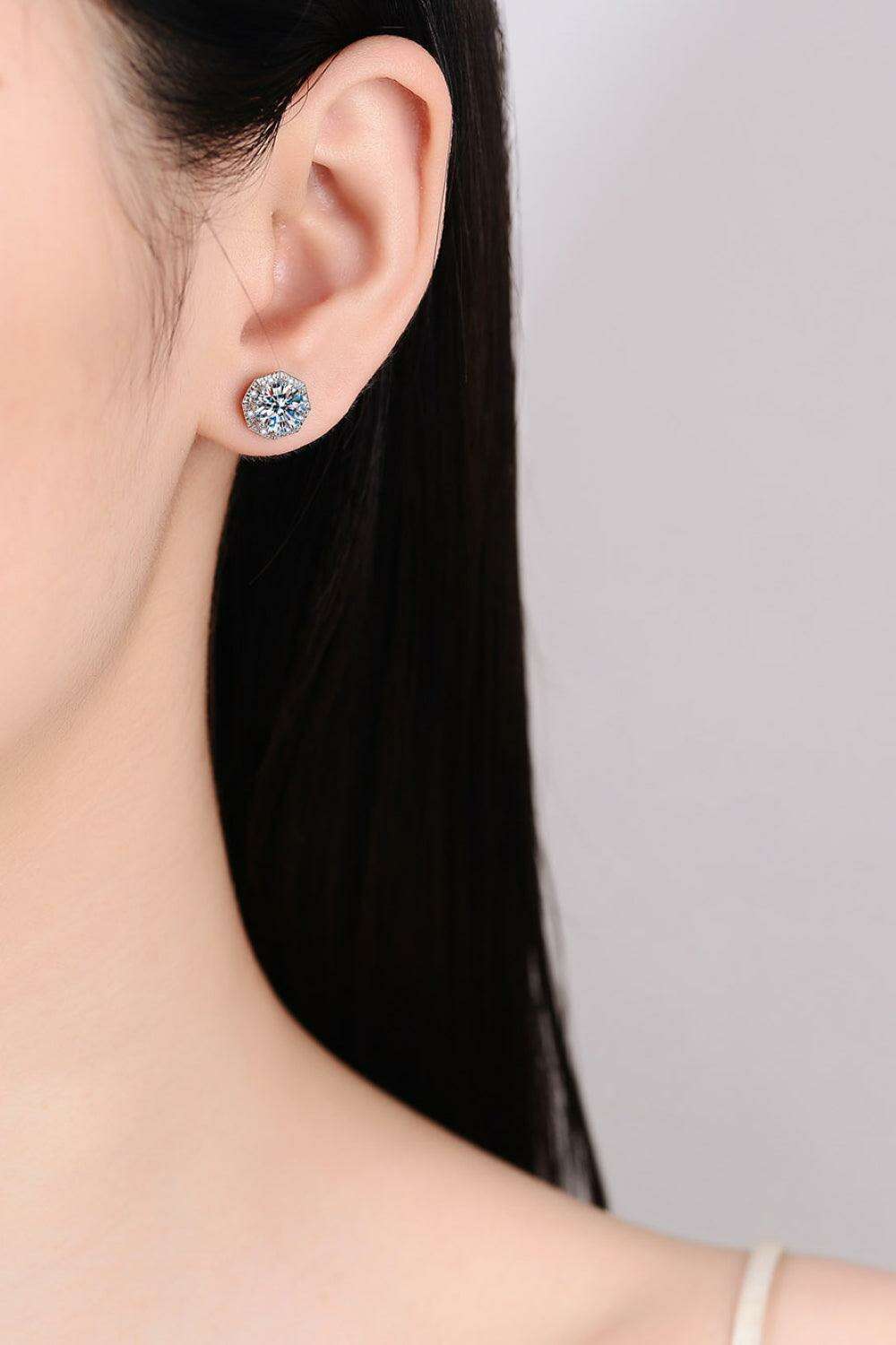 Glistening Elegance: 2 Ct Moissanite Sterling Silver Stud Earrings with Rhodium Finish - Gift Box Included