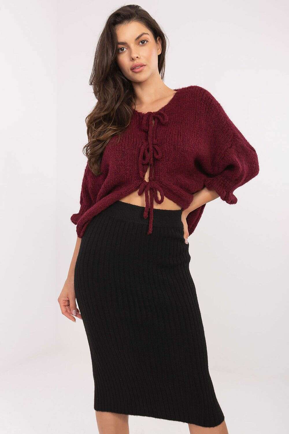 Cardigan model 216109 is a women’s casual sweater designed for everyday wear. Its smooth pattern and minimalist silhouette create a universal, versatile look that pairs with everything in your wardrobe. Made from soft acrylic, it offers comfortable, all-day wear without compromising style.